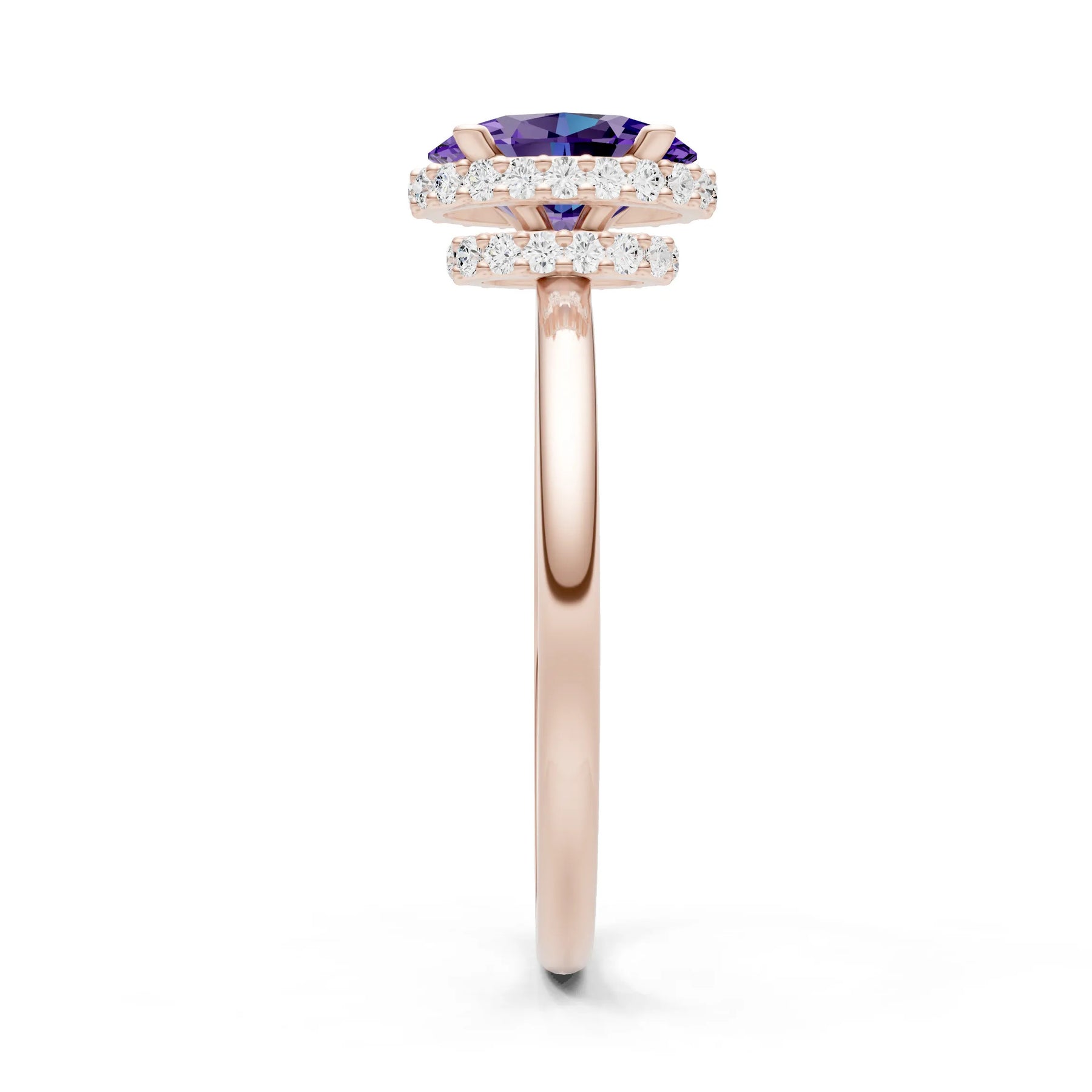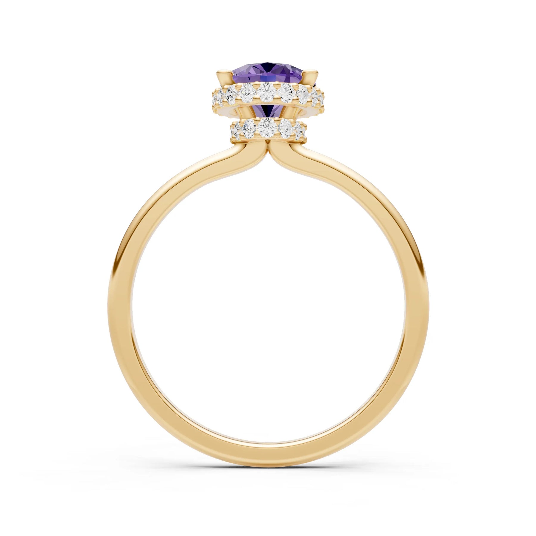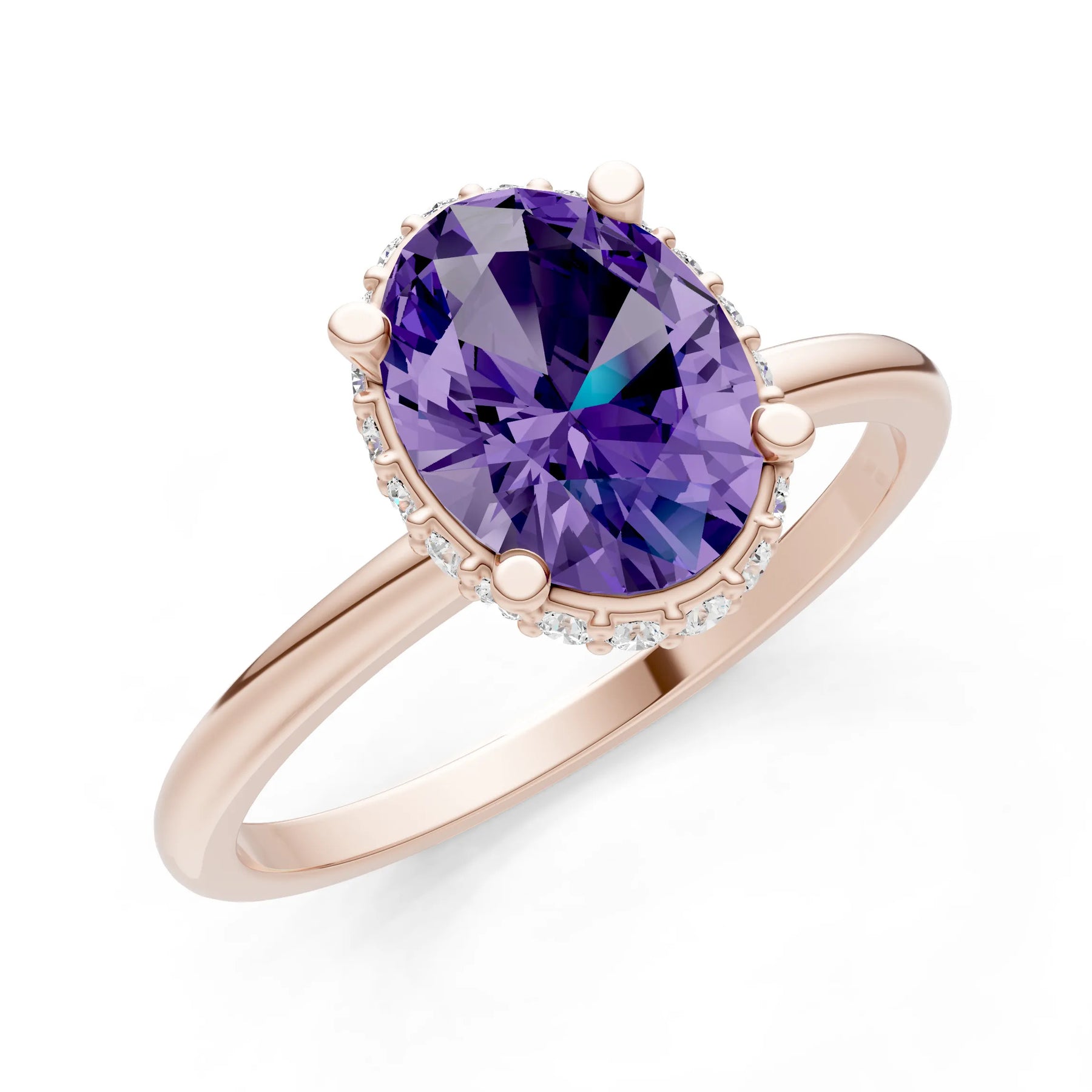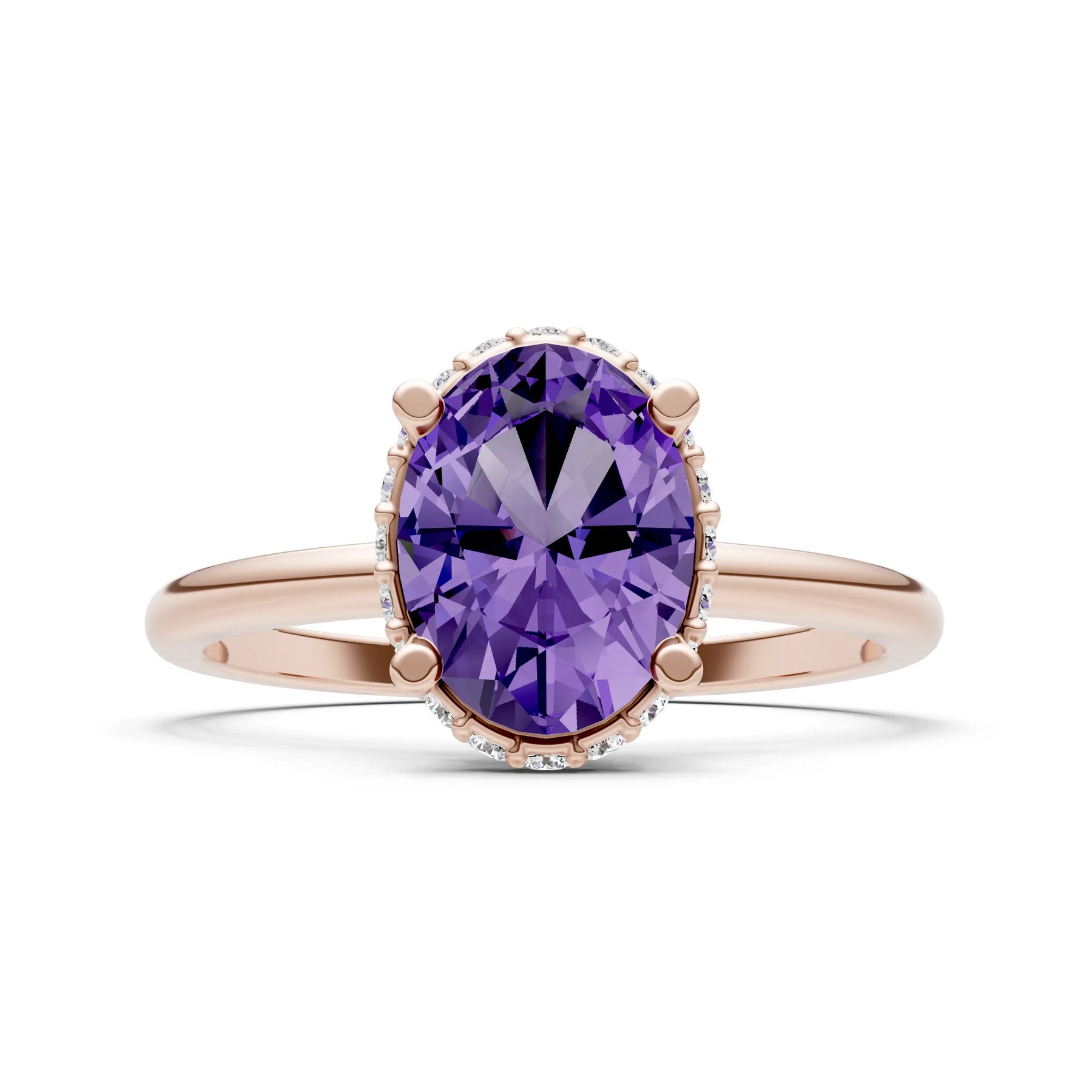 Amethyst Oval Hidden Double Halo Engagement Ring