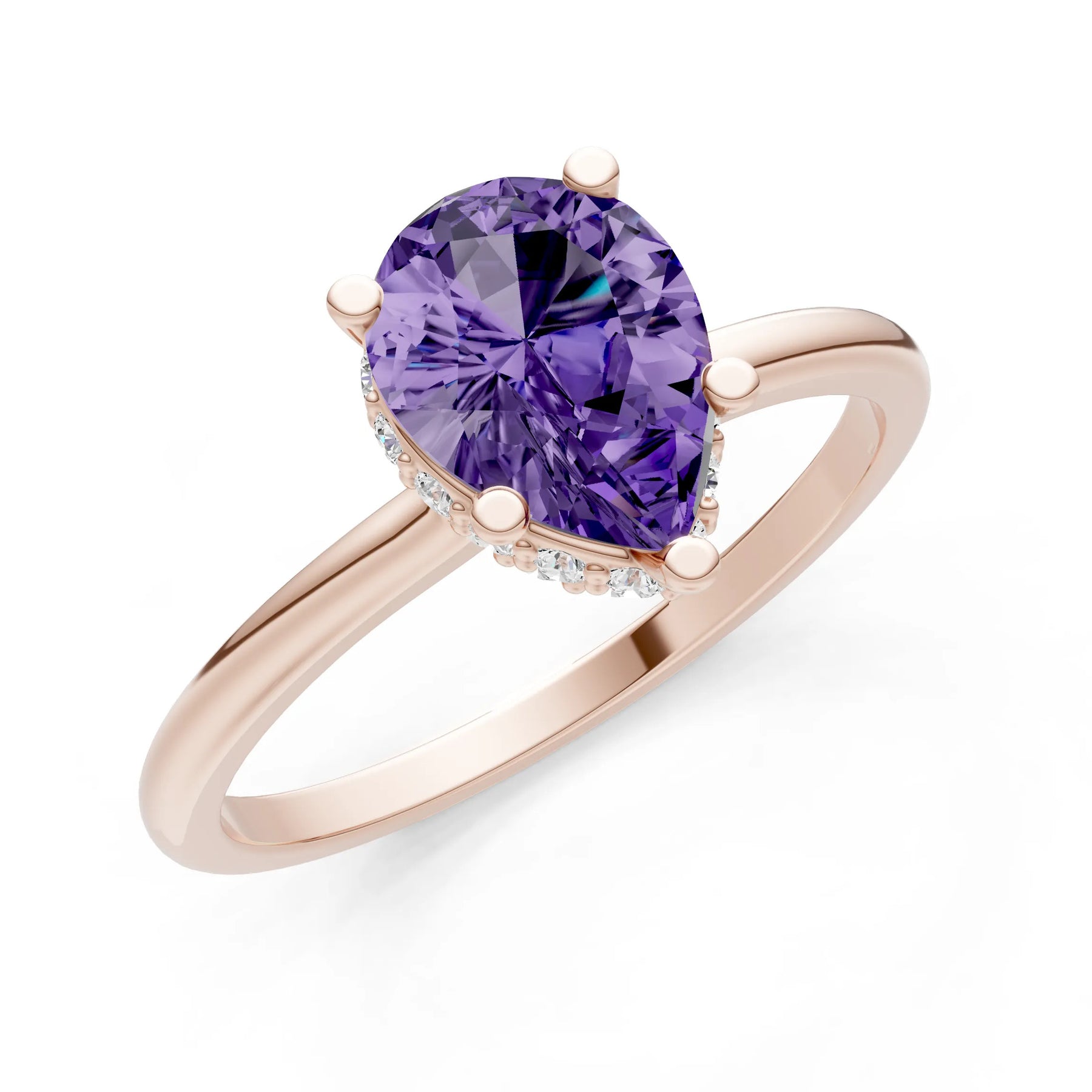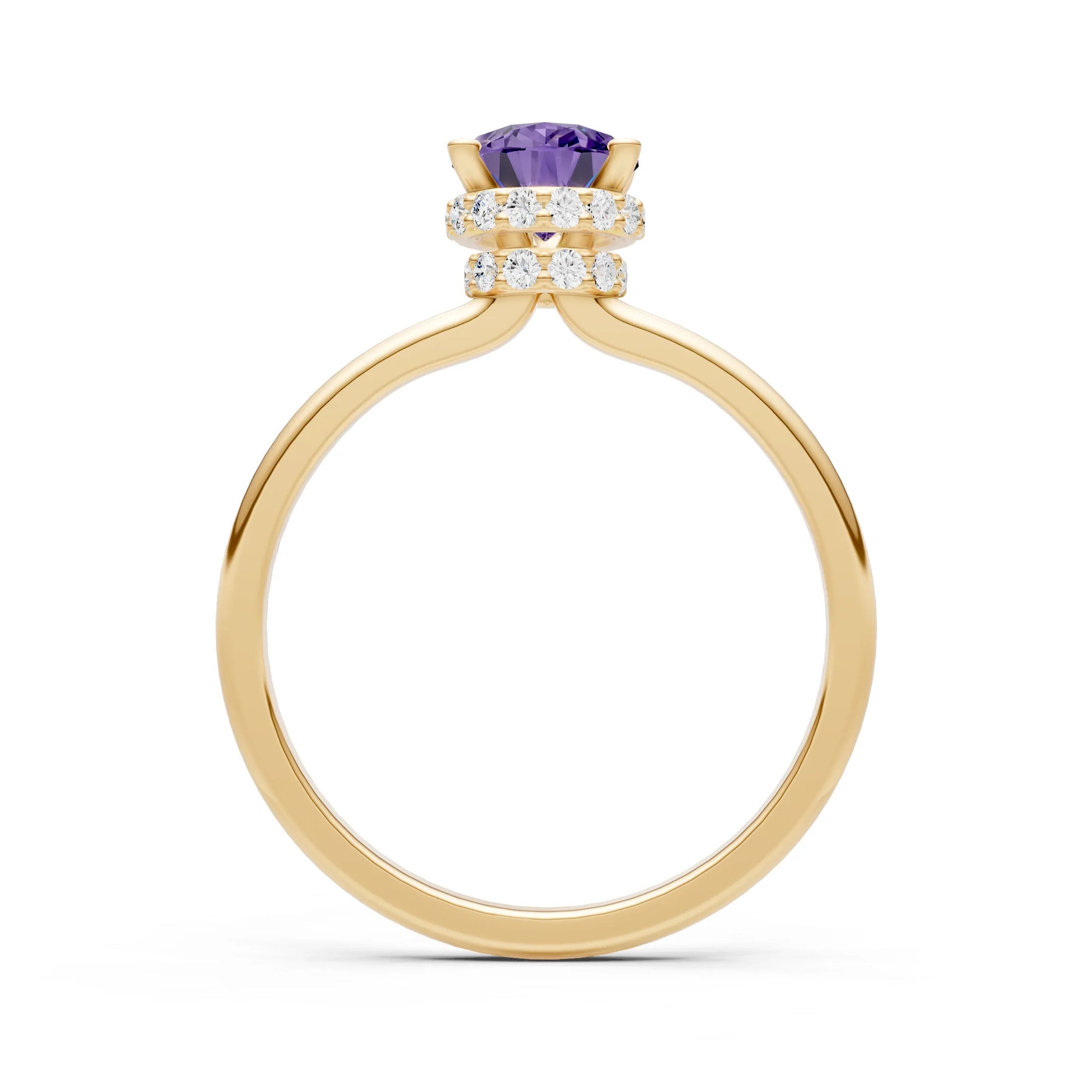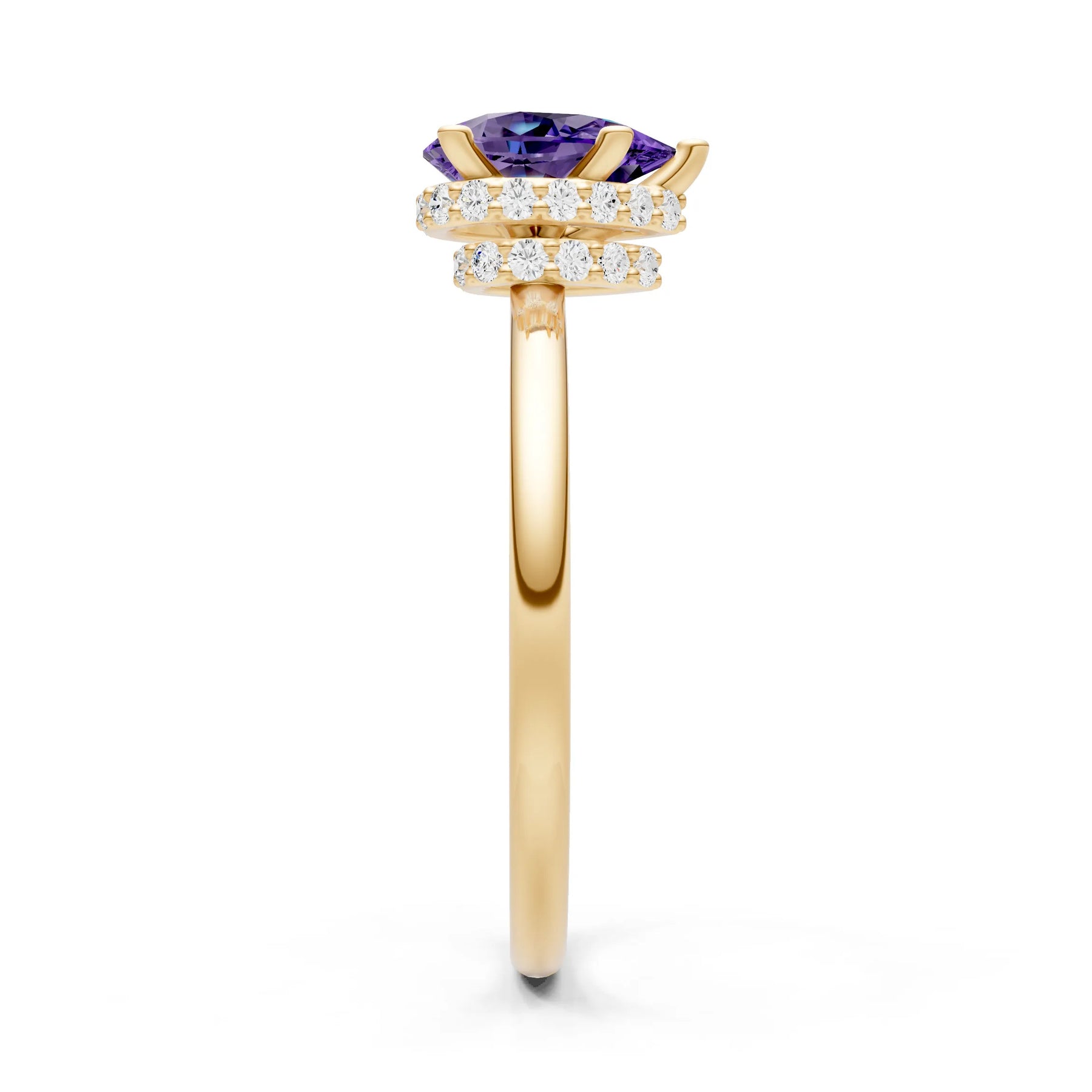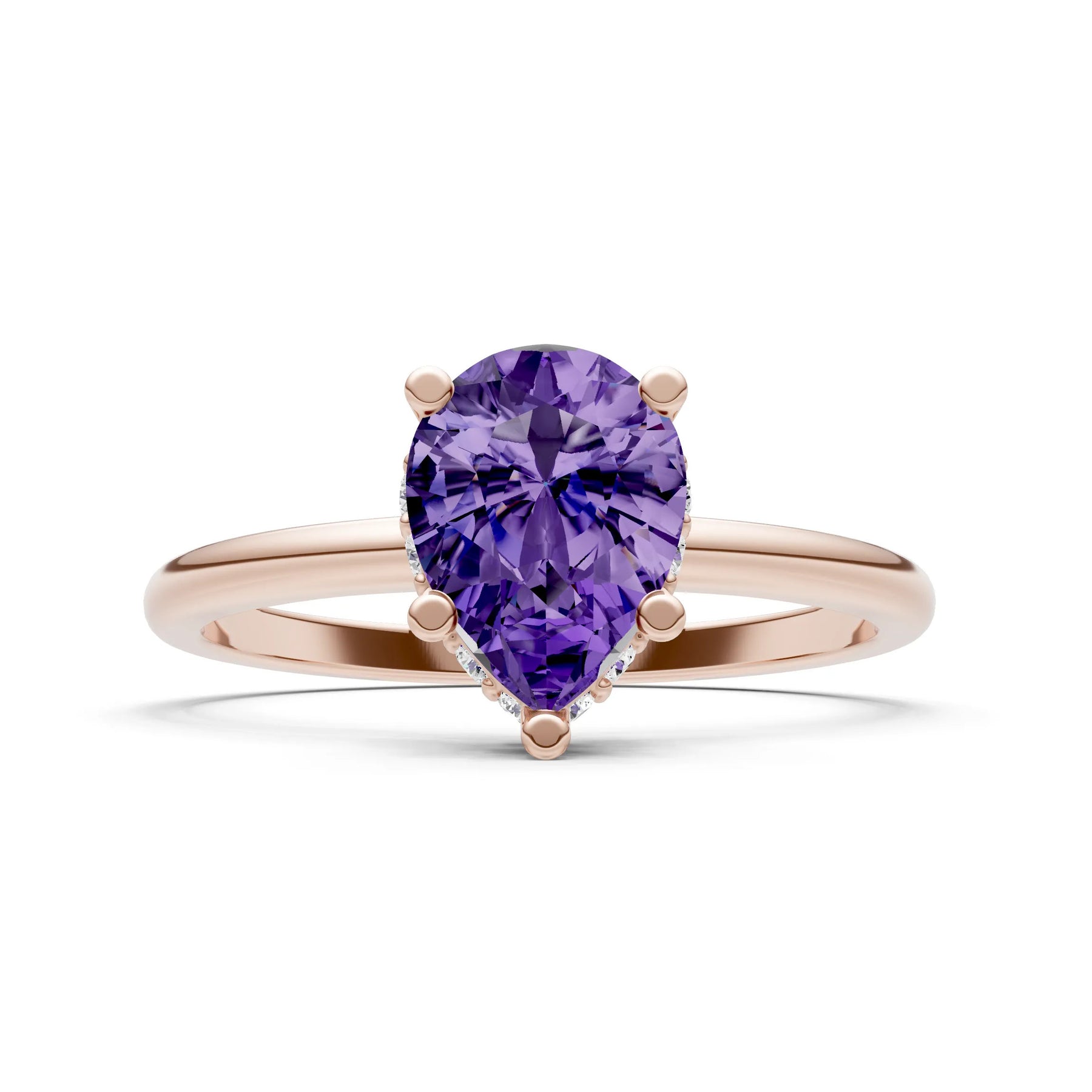 Amethyst Pear Hidden Double Halo Engagement Ring