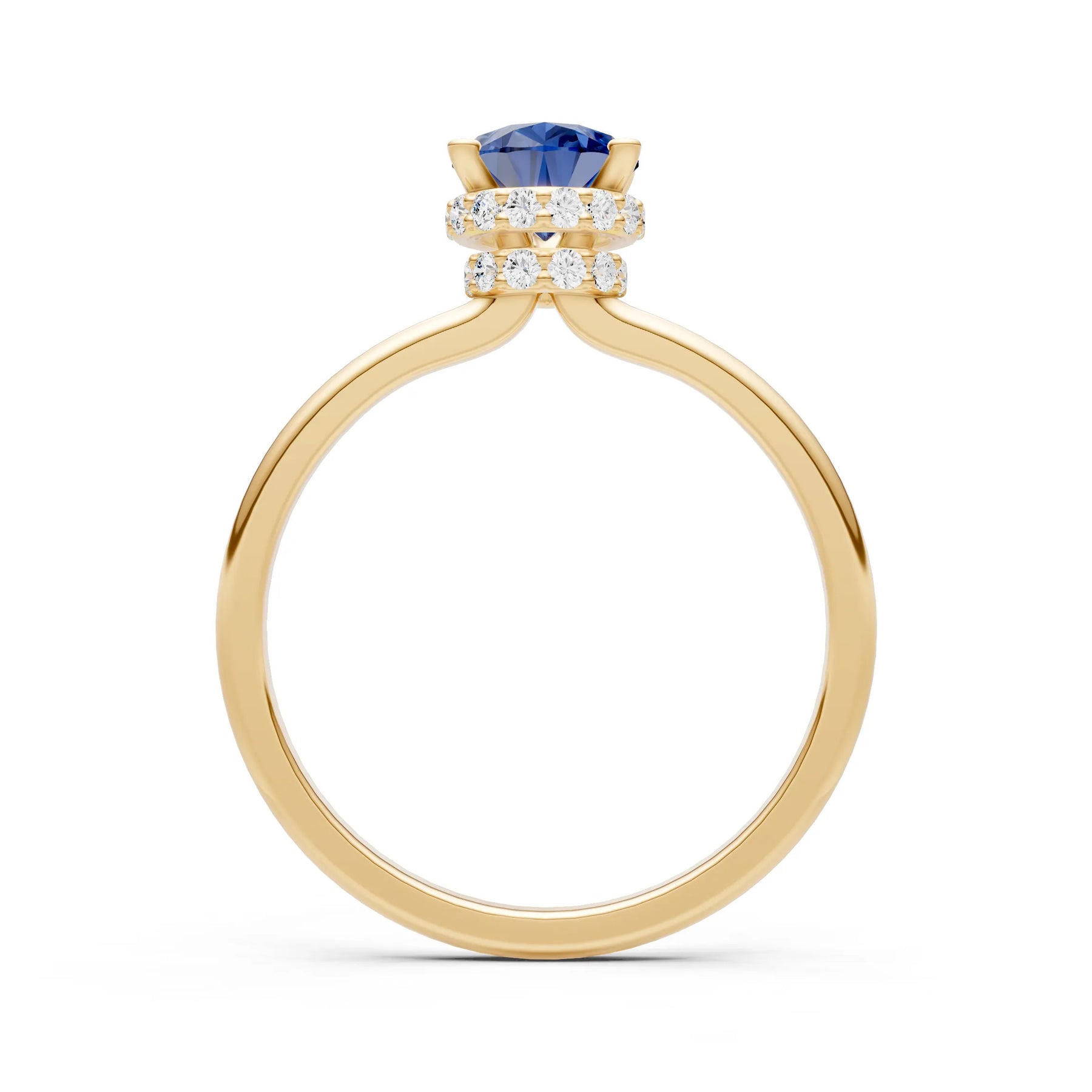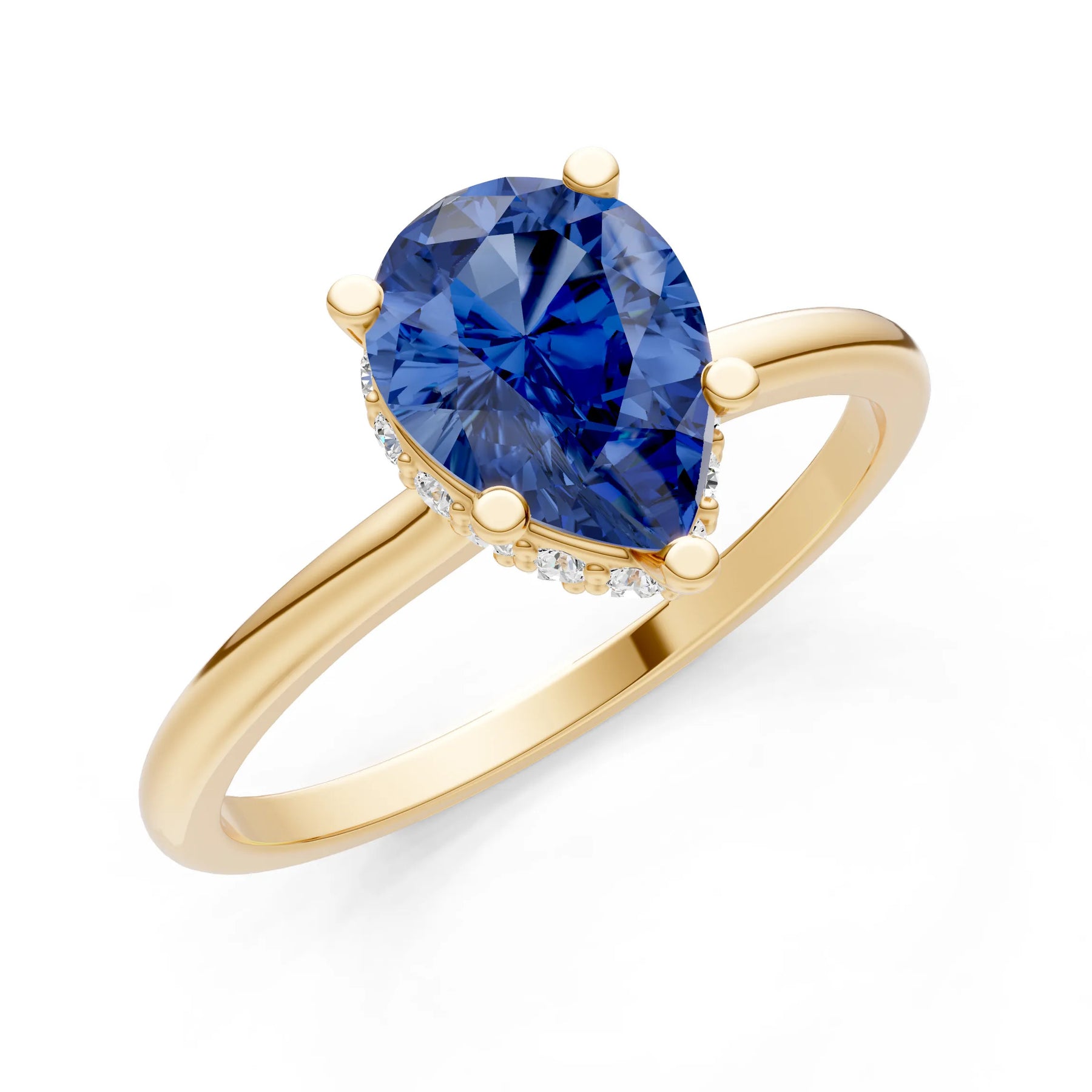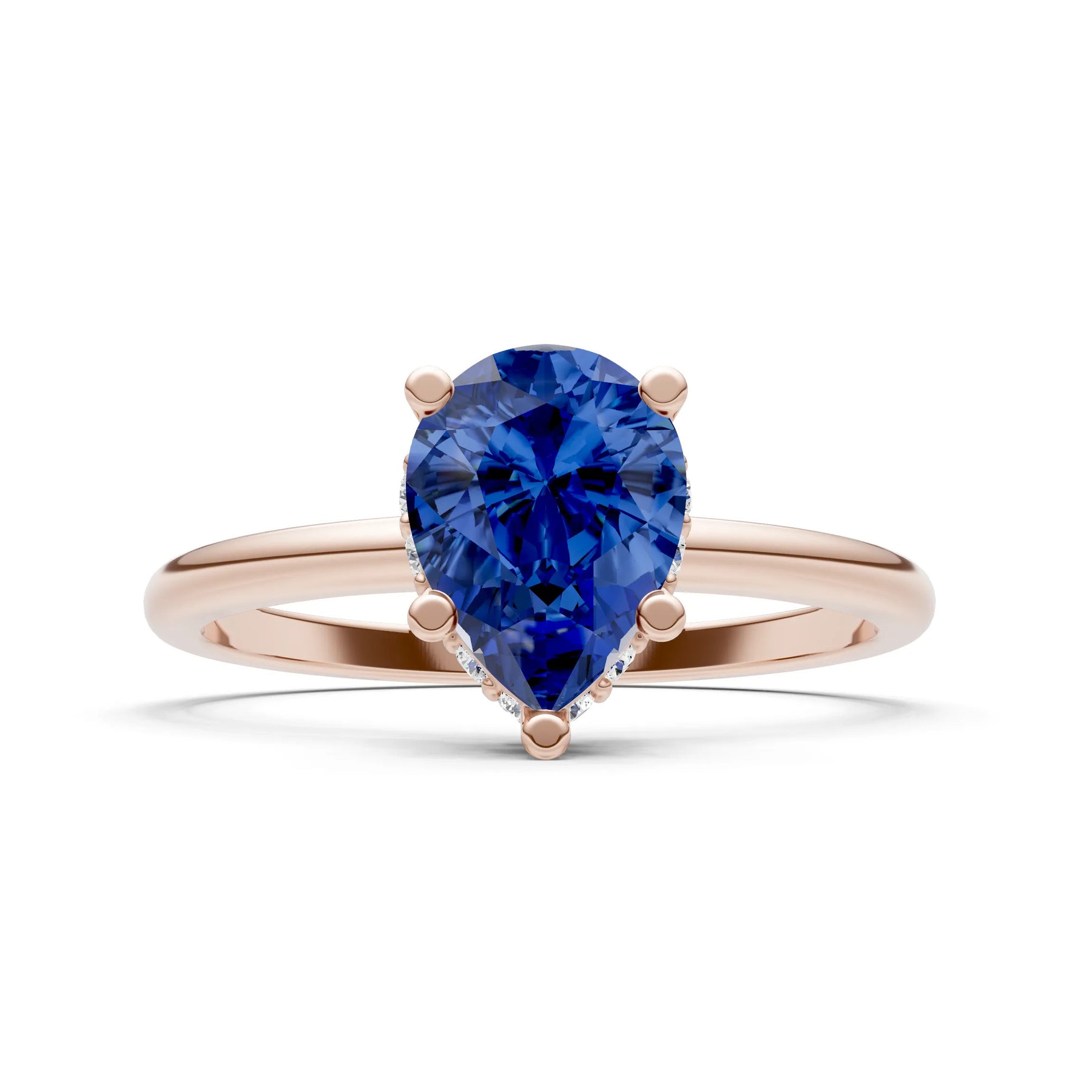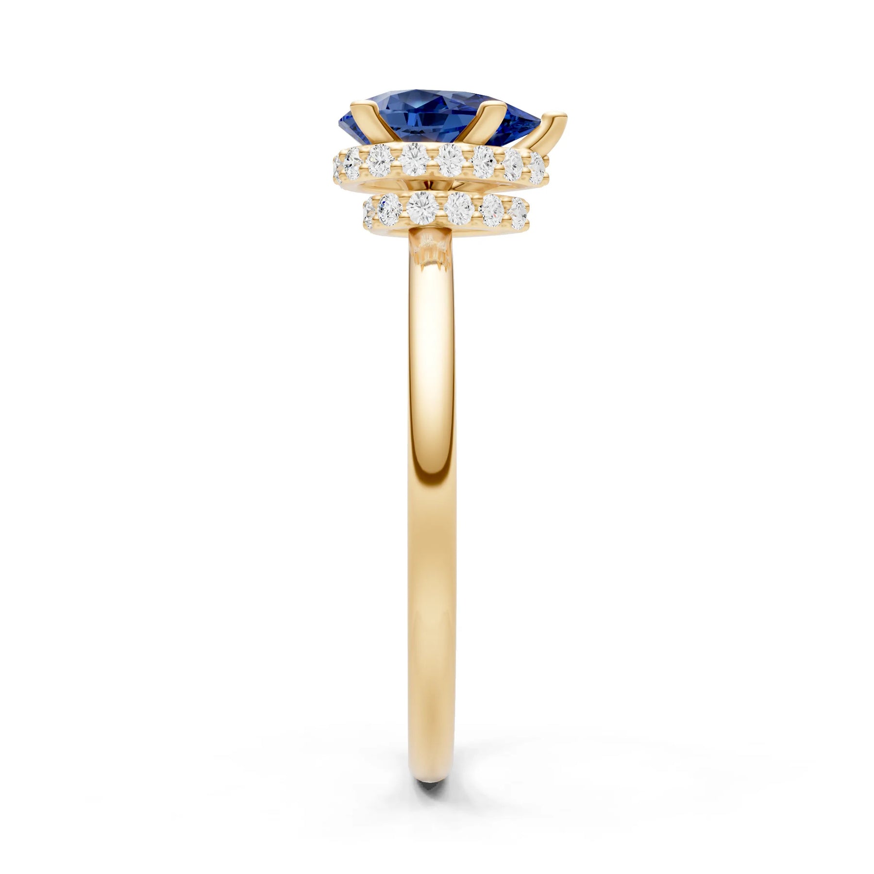 Blue Sapphire Pear Hidden Double Halo Engagement Ring