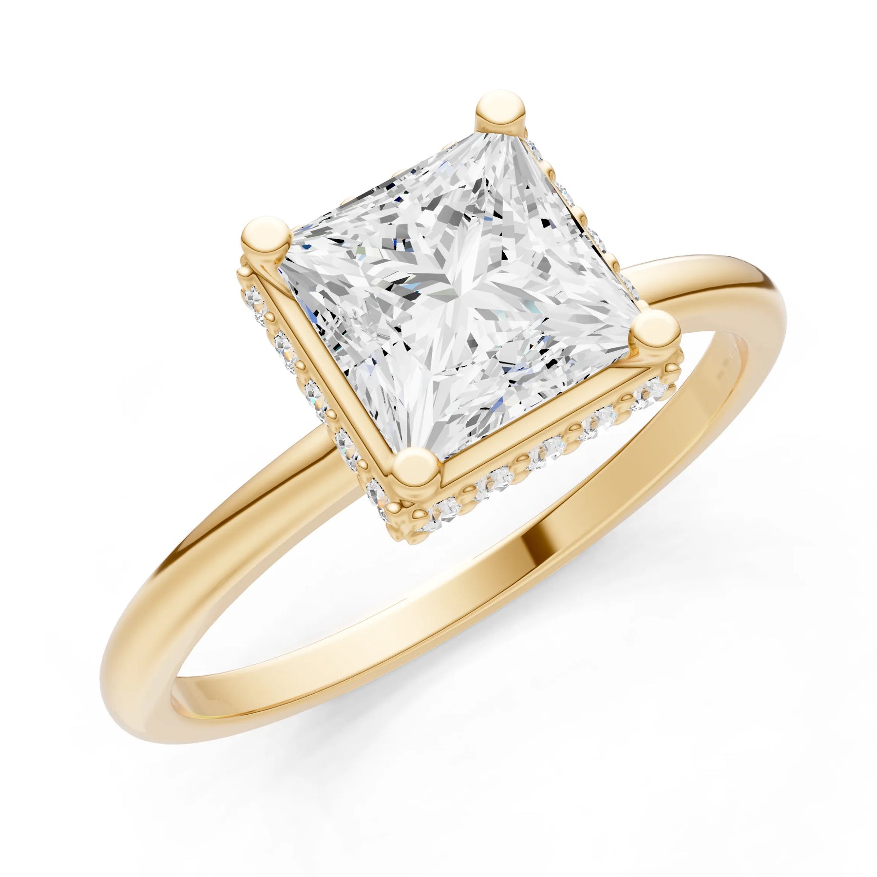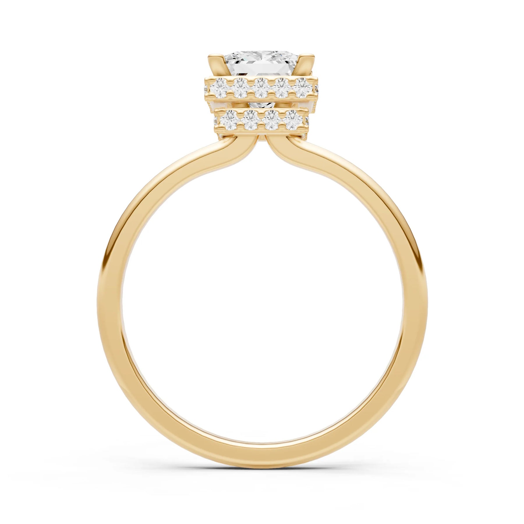 Diamond Princess Cut Hidden Double Halo Engagement Ring
