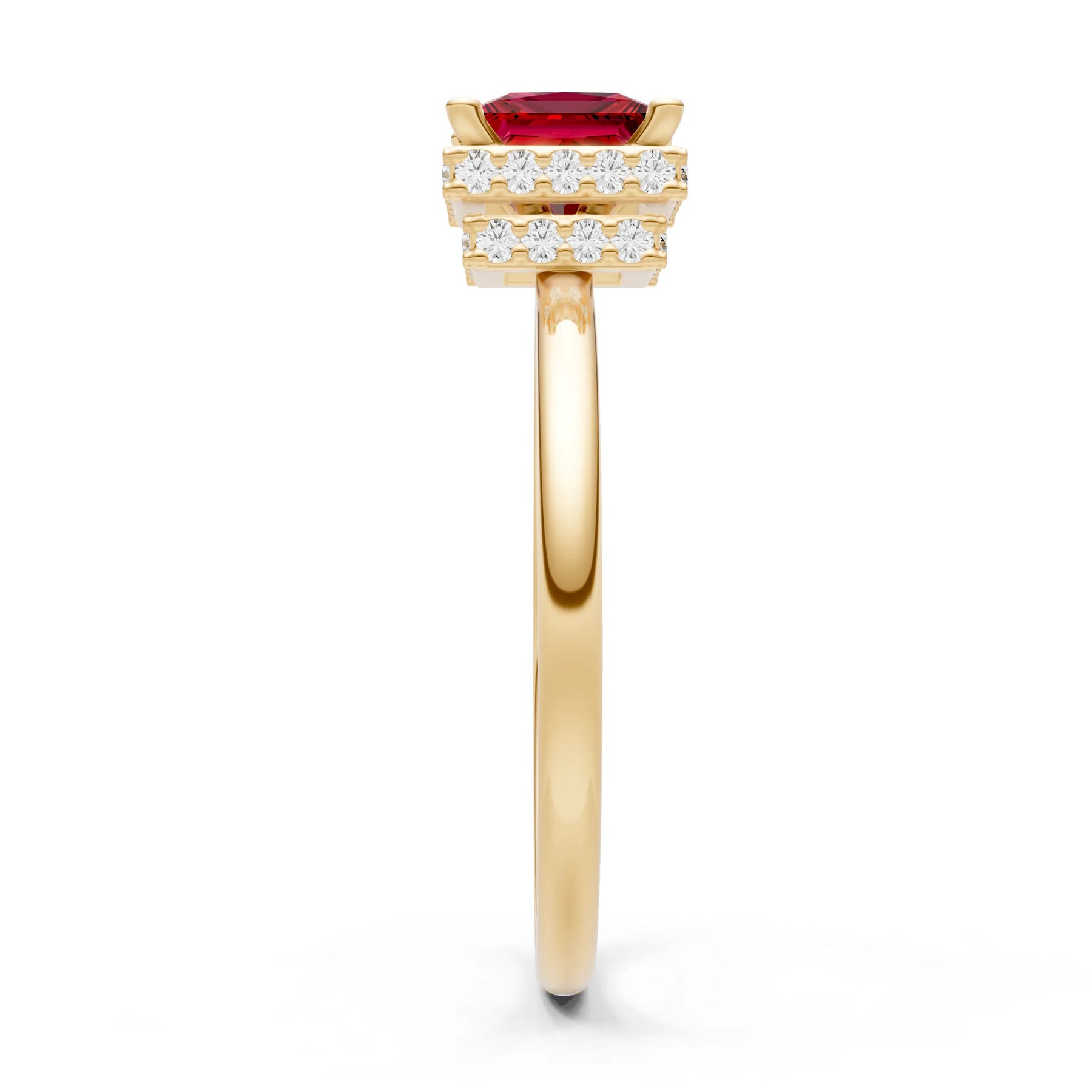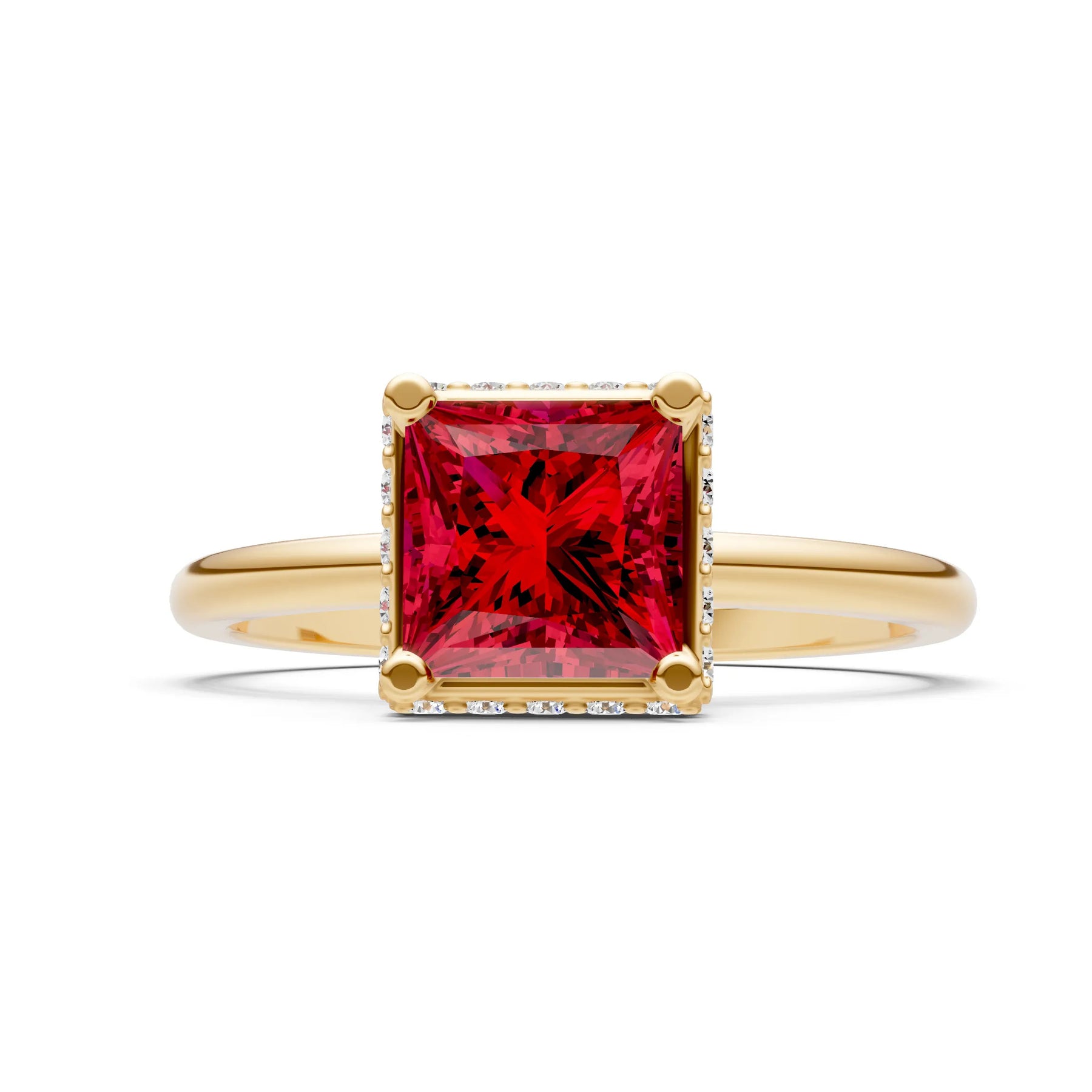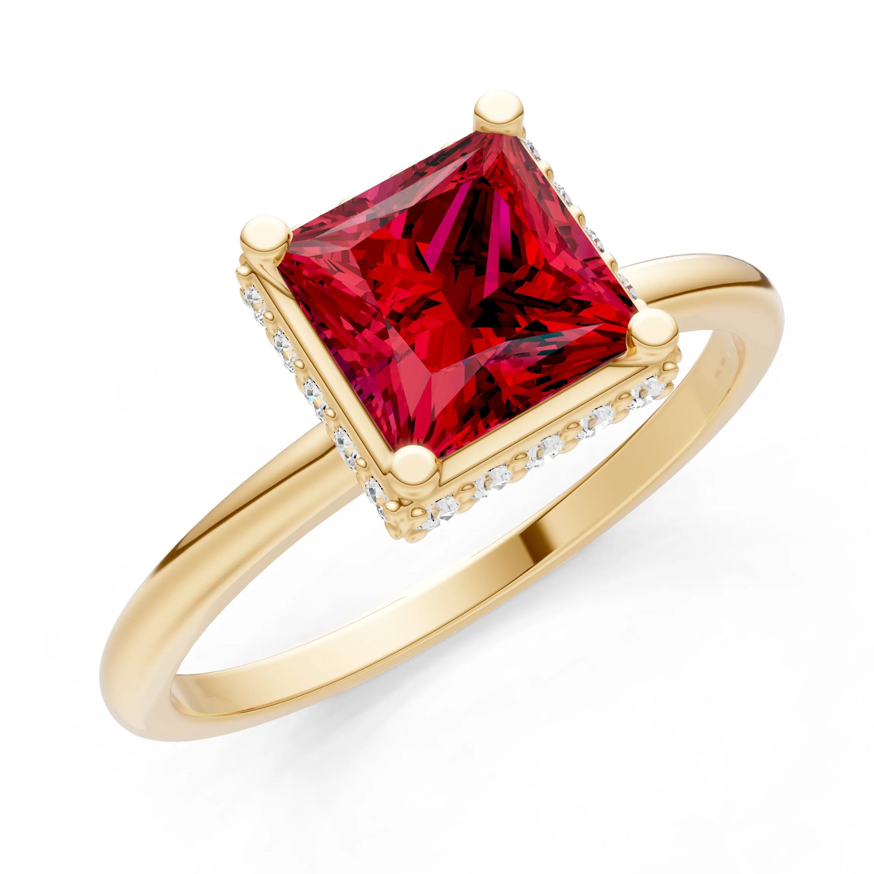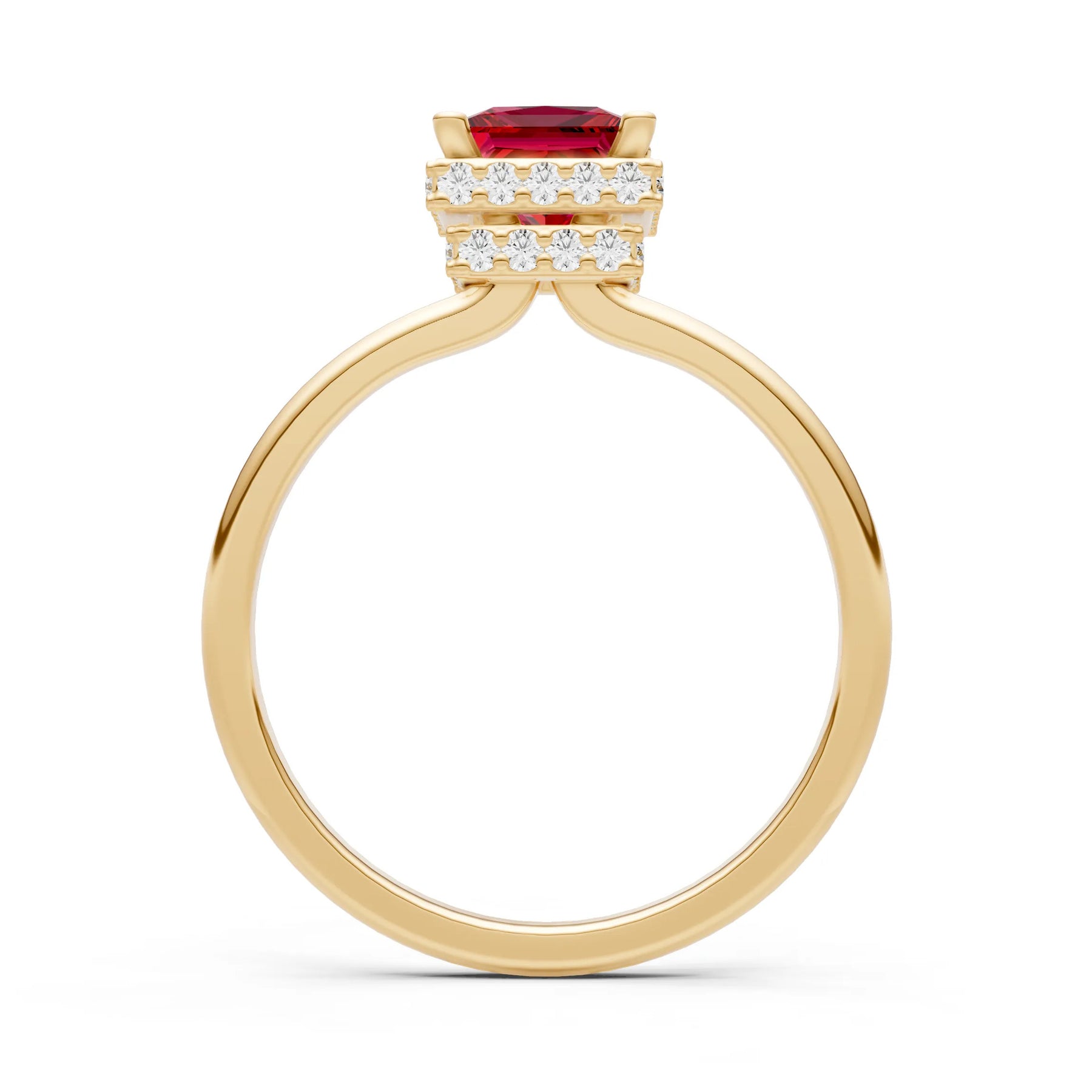Ruby Princess Cut Hidden Double Halo Engagement Ring