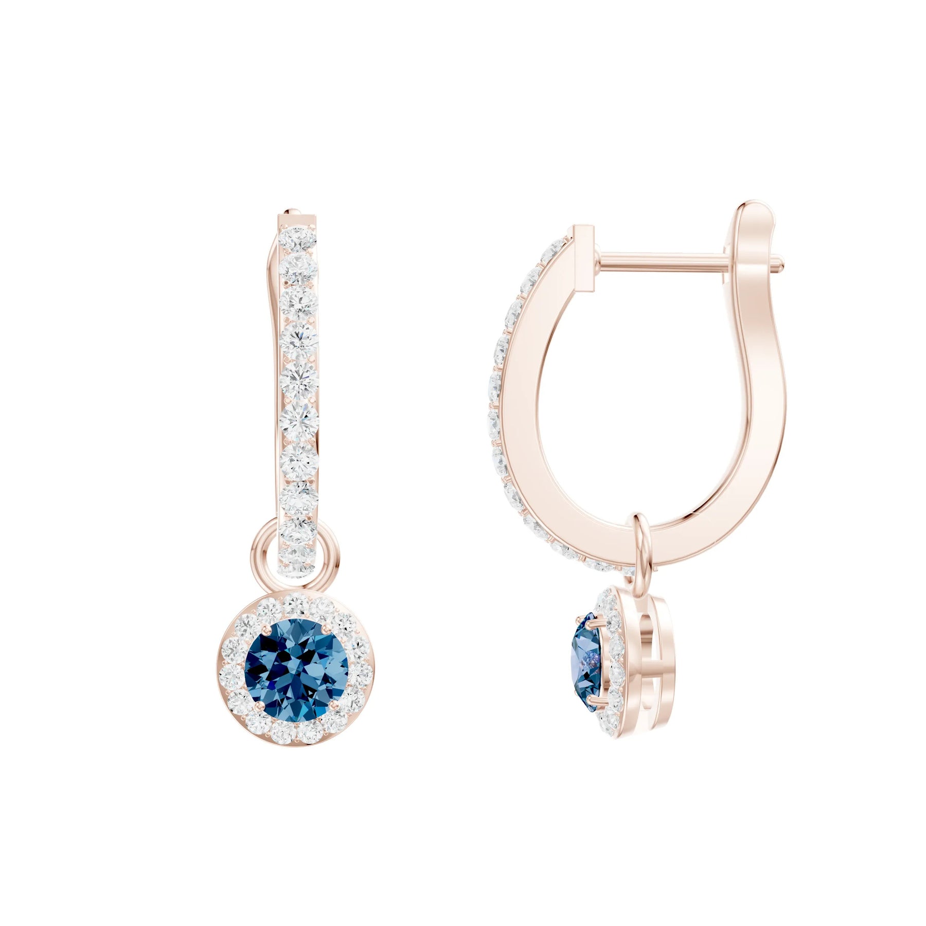 Alexandrite Round Halo Drop Hoops Earrings - 4mm