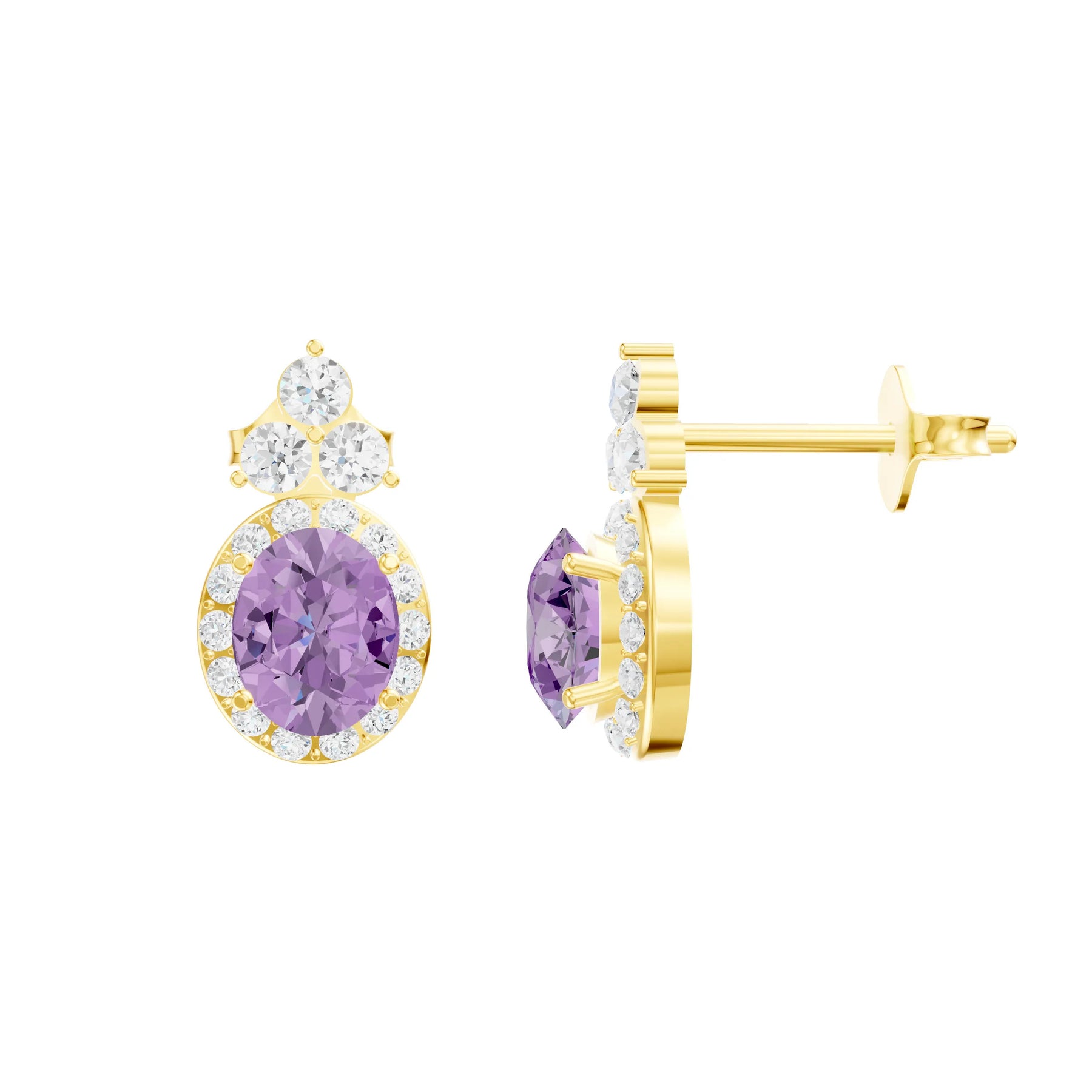 Amethyst Oval Halo Earrings - 6x4mm