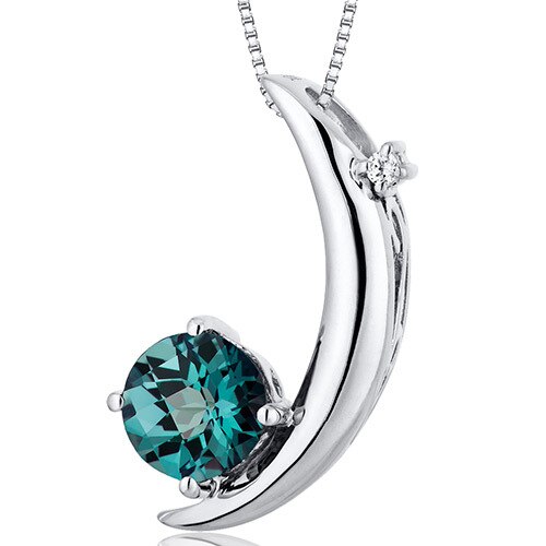 Alexandrite Pendant Necklace Sterling Silver Round 1 Carats