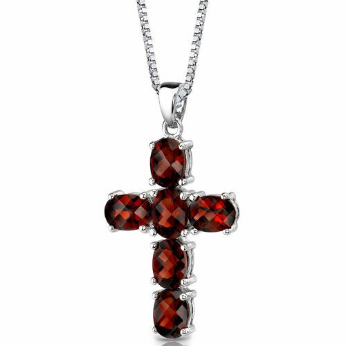 Garnet Pendant Necklace Sterling Silver Oval Shape 6 Carats