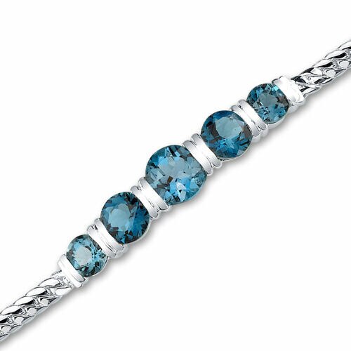 London Blue Topaz 5-Stone Bracelet Sterling Silver Round Shape 5 Carats
