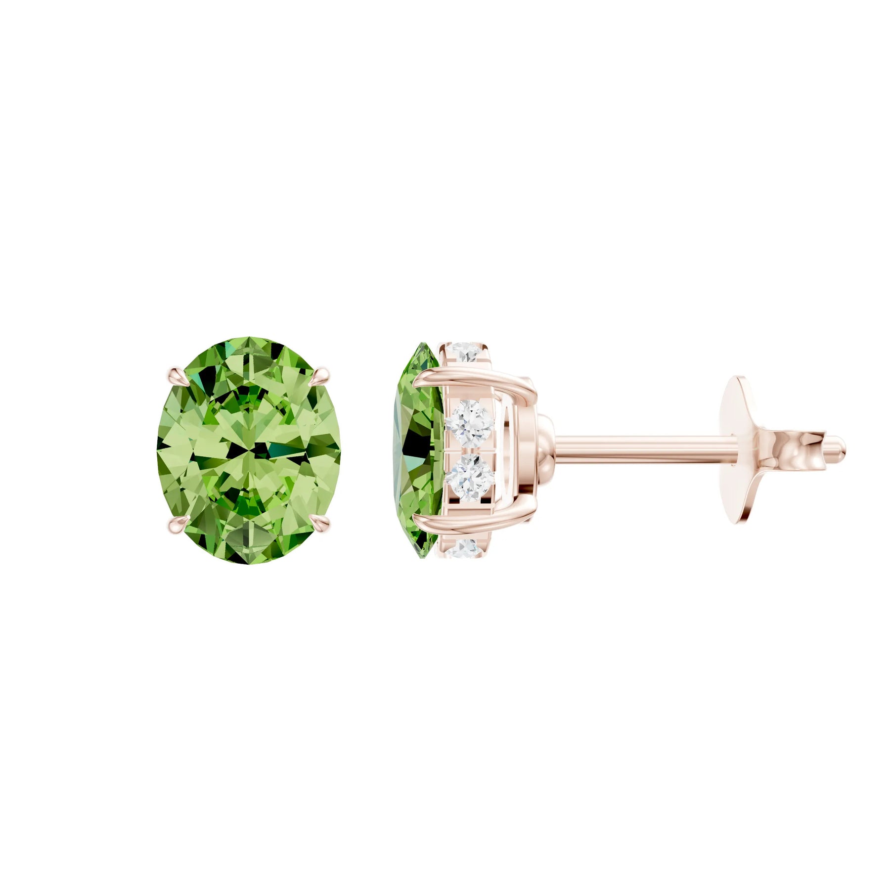Peridot Hidden Halo Earrings - Oval - 5x3mm
