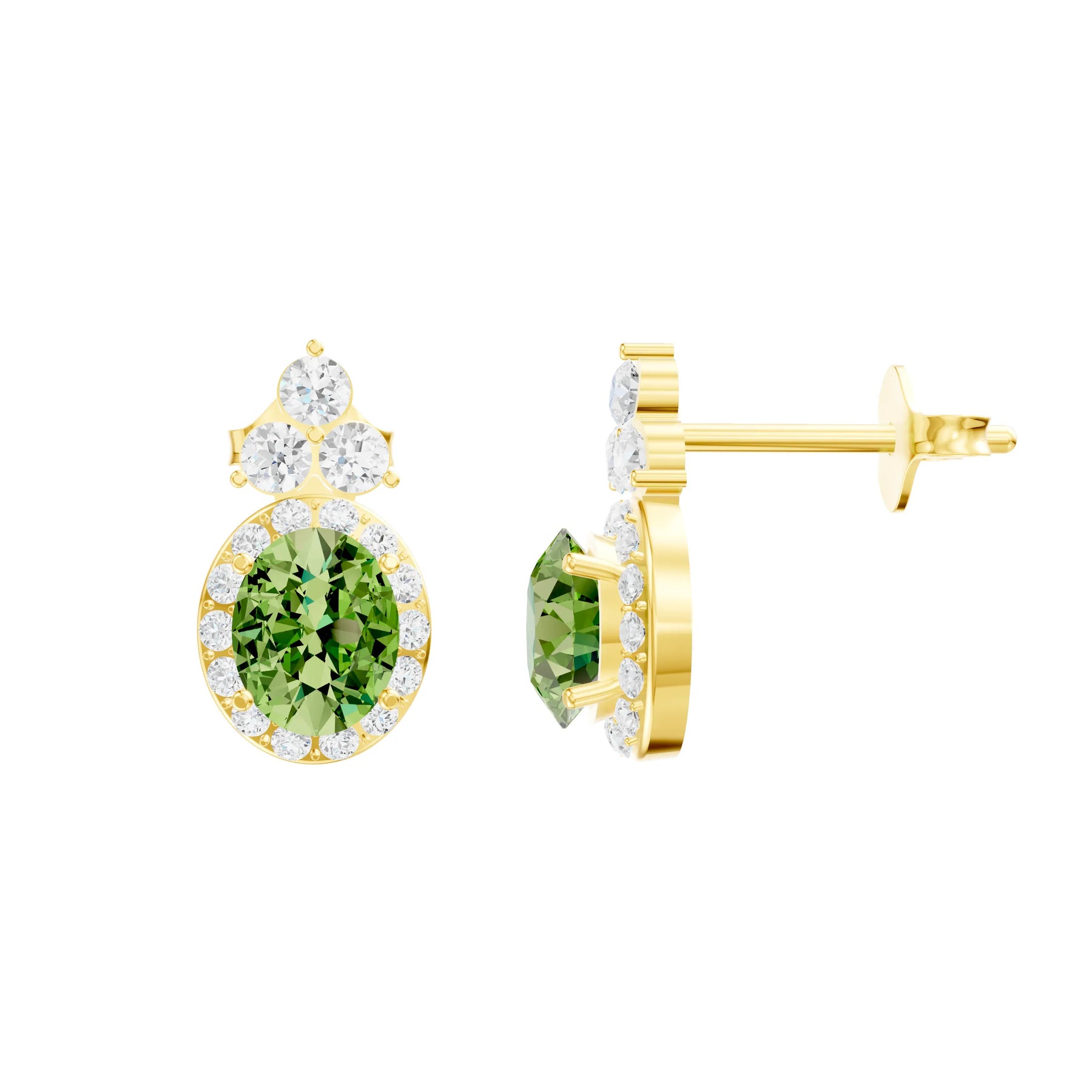 Peridot Oval Halo Earrings - 6x4mm