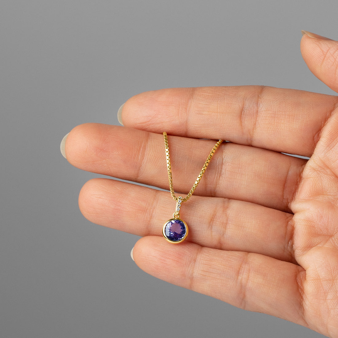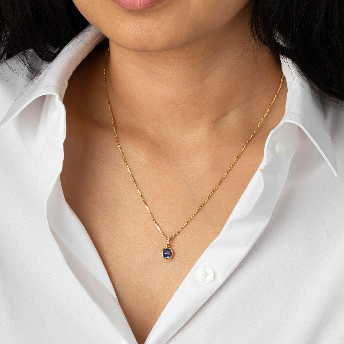 A breathtaking Peora natural Tanzanite Pendant with Lab Grown Diamonds in 14 Karat Yellow Gold.