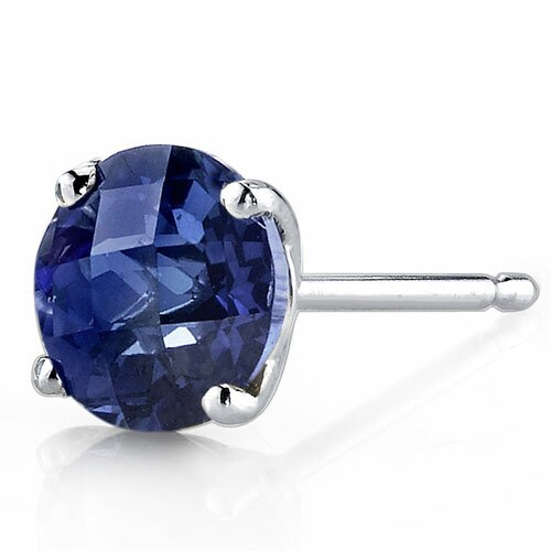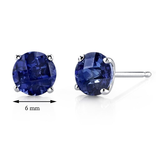 These standout earrings feature round shape Peora created blue sapphire gemstones in 14K white gold.