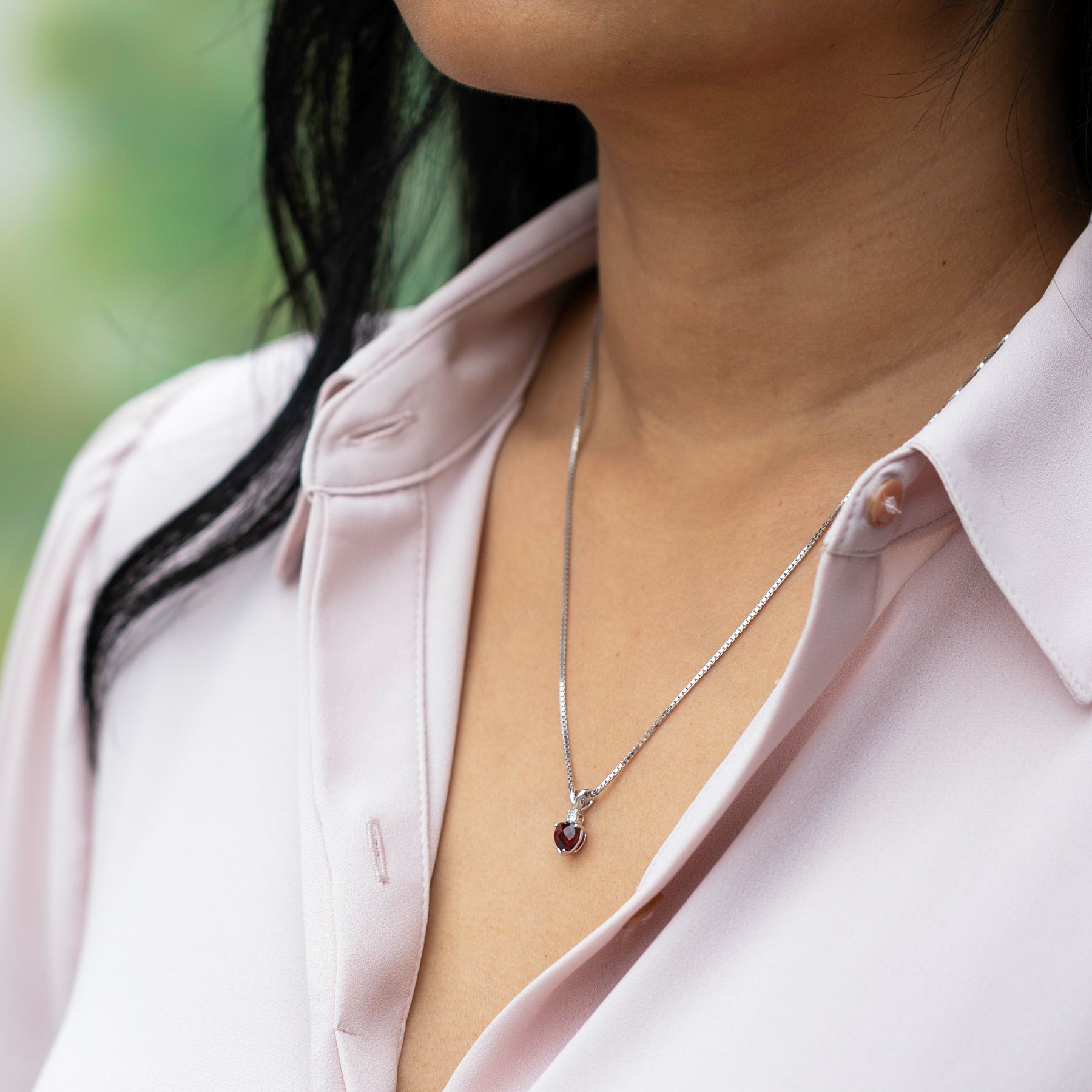This classic pendant features heart shape Peora natural Garnet gemstones in 14K white gold.
