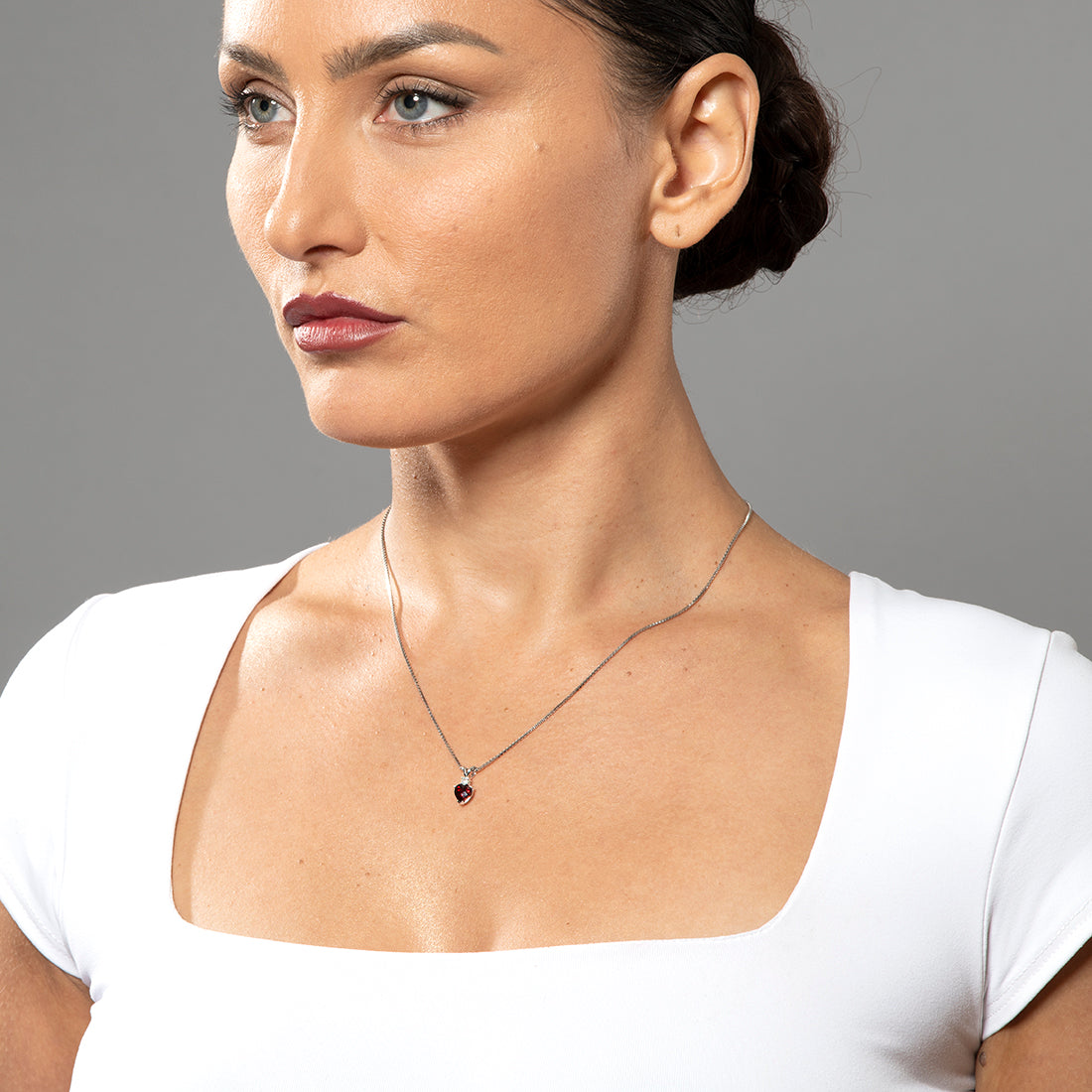 Garnet Pendant Necklace 14 Karat White Gold Heart 1.31 Carats P8992-model