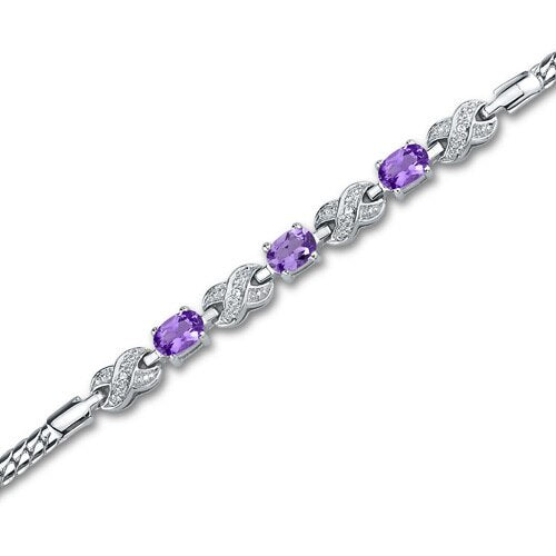 This graceful bracelet features oval shape Peora natural Amethyst gemstones in .925 sterling silver.