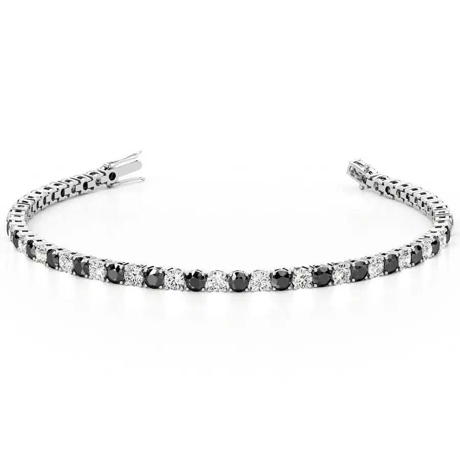 Black and White Diamond Tennis Bracelet 14K Gold 6 Carats