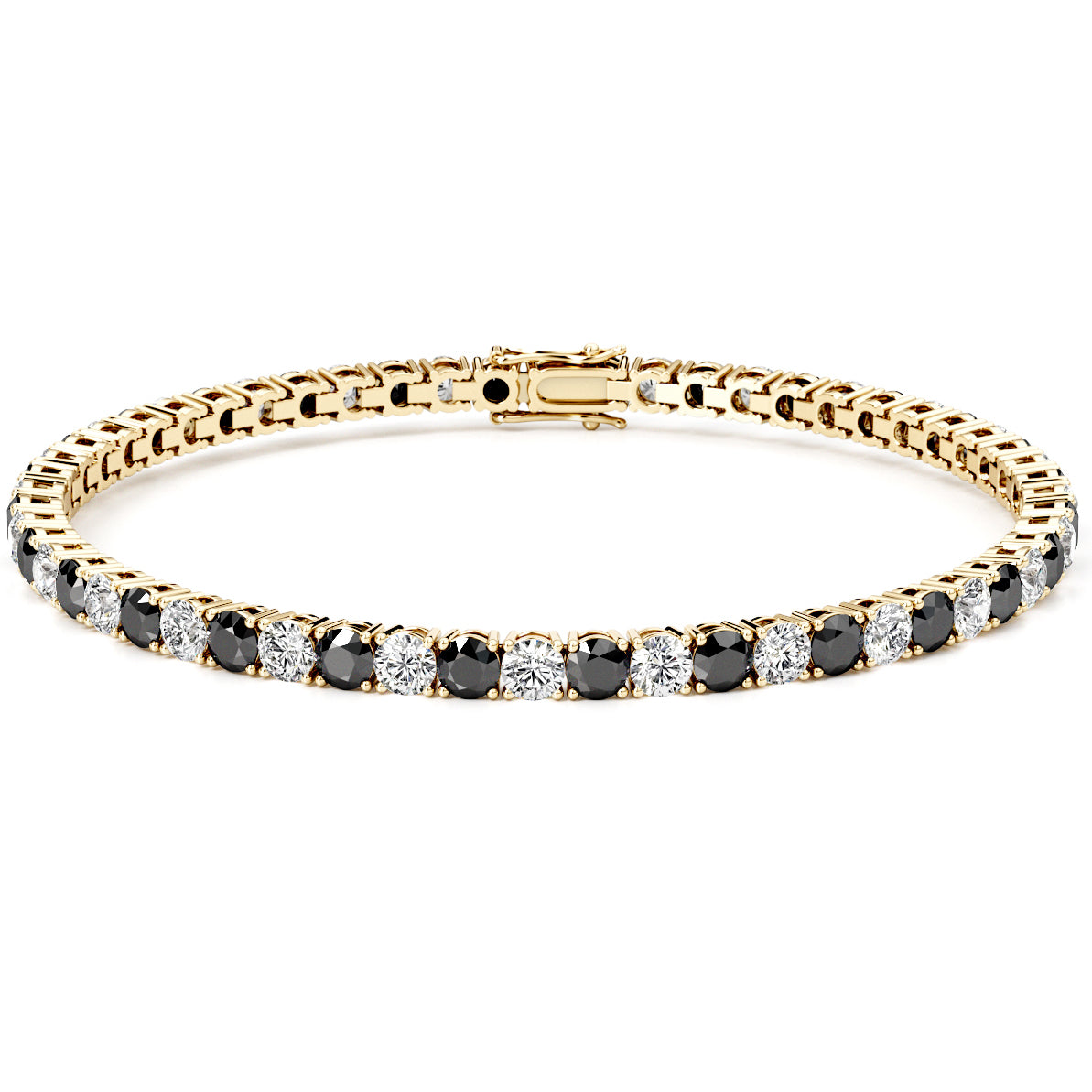 This classic tennis bracelet features Round Shape Peora Genuine Black Diamonds and White Lab-Grown Diamond gemstones in 14K Gold.
