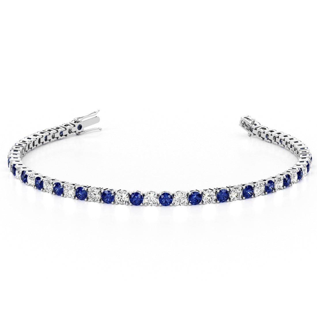 Blue Sapphire and Diamond Tennis Bracelet 14K Gold 9.50 Carats