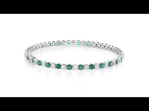 Emerald and Diamond Tennis Bracelet 14K Gold 6 Carats