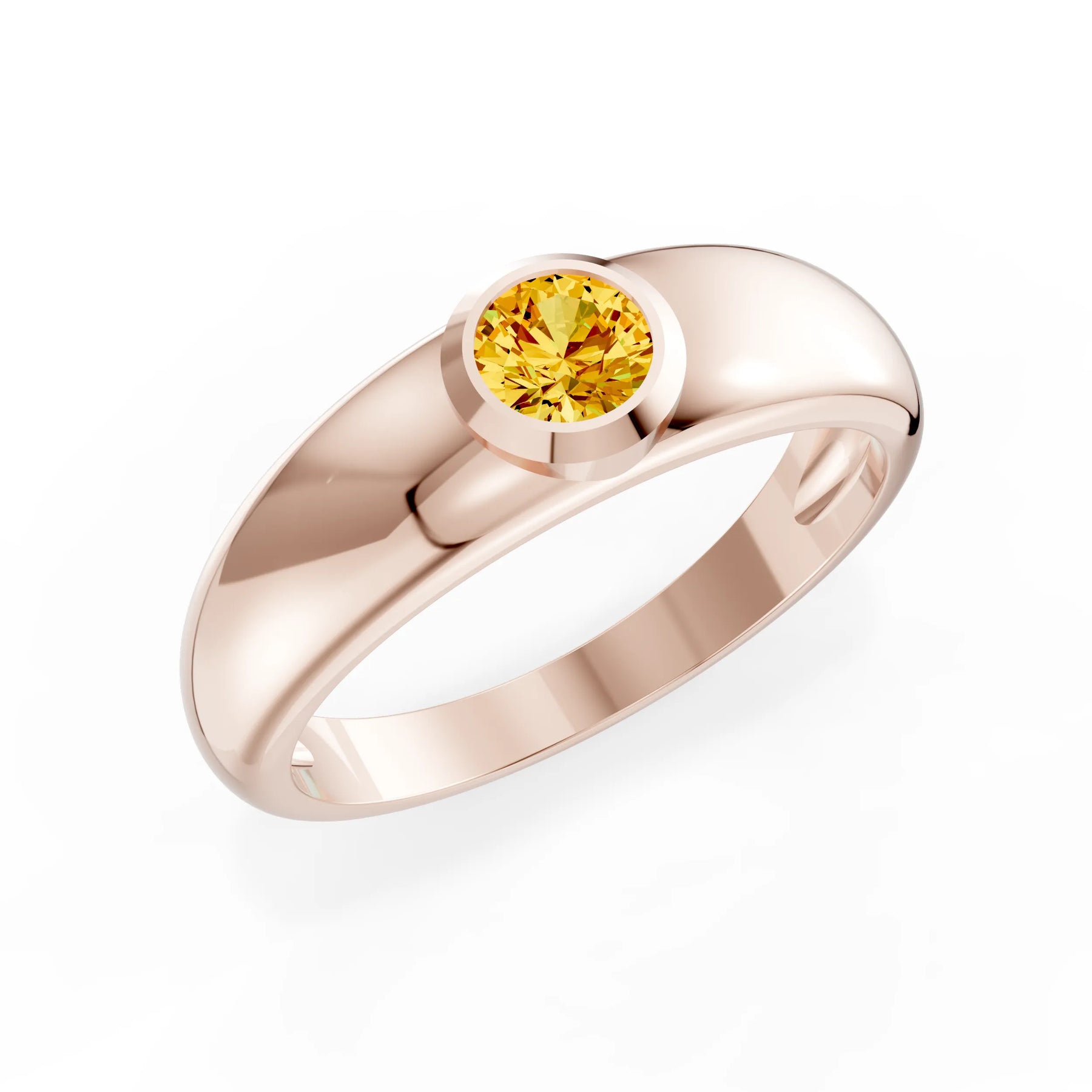 Citrine Bezel Set Round Cut Signet Ring