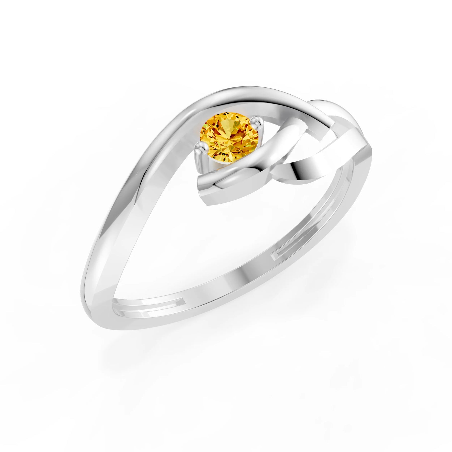 Citrine Dainty Twist Solitaire Round Ring - Round