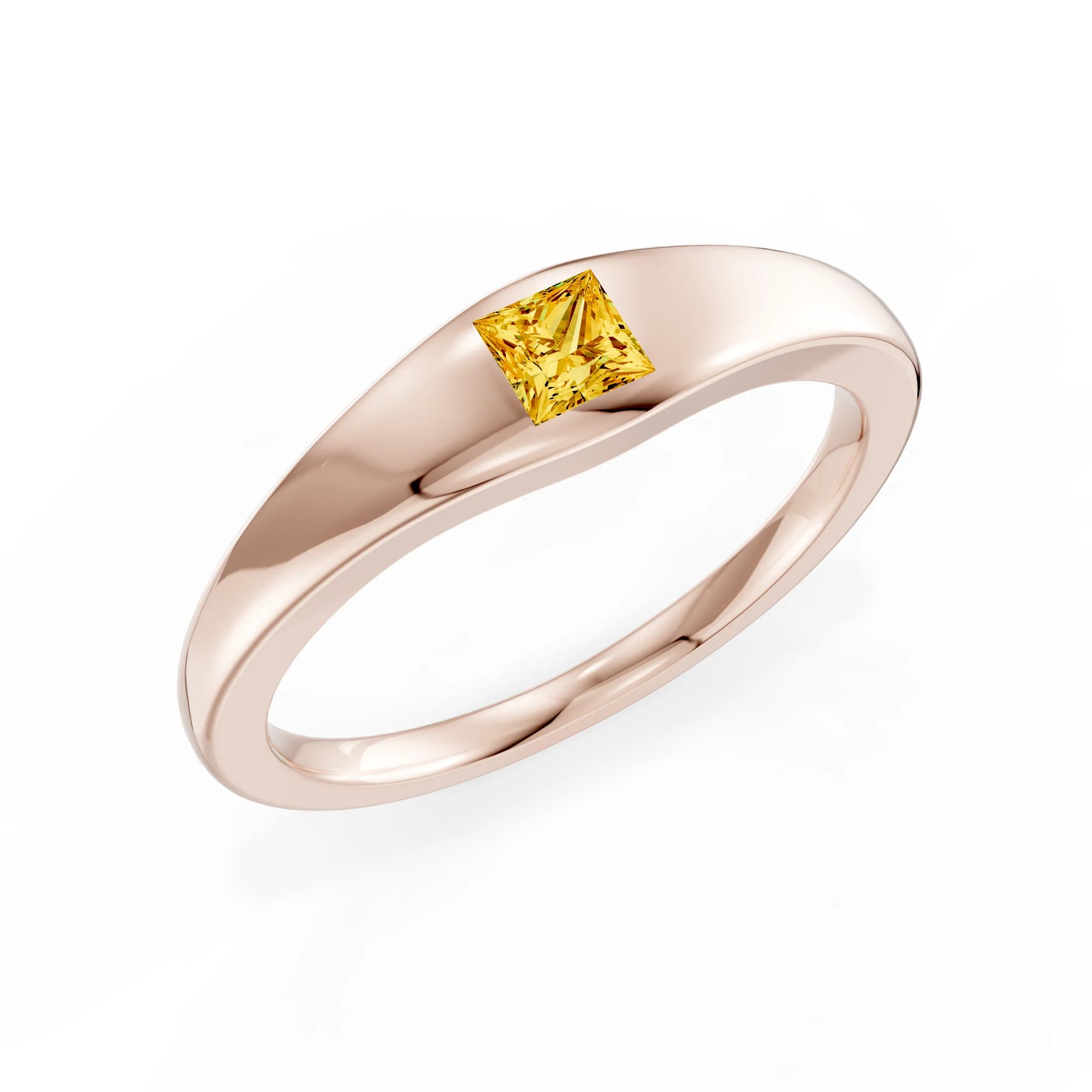 Citrine Flush-Set Princess Cut Gemstone Mini Signet Ring