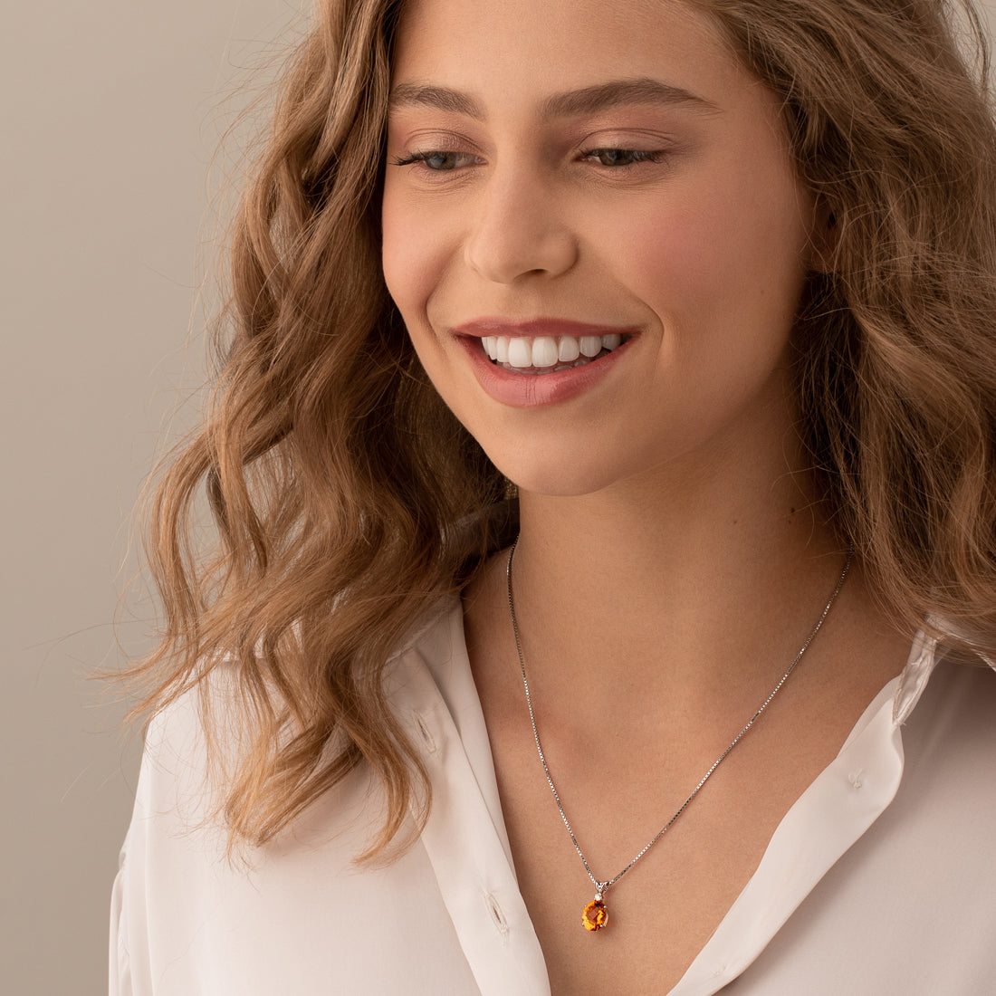 This classic pendant features oval shape Peora natural Citrine gemstones in 14K white gold.