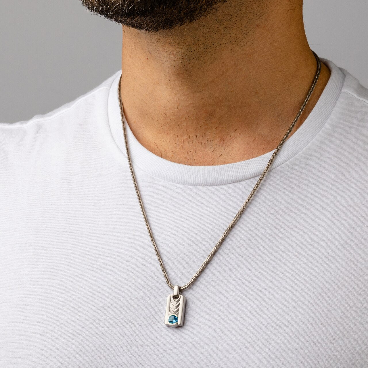 Video of London Blue Topaz Chevron Pendant Necklace For Men In Sterling Silver SN12072. Includes a Peora gift box. Free shipping, 30-day returns, authenticity guaranteed.