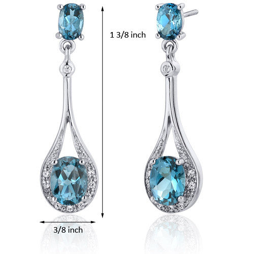 London Blue Topaz Earrings Sterling Silver Oval Shape 4 Carats SE7932-dimensions