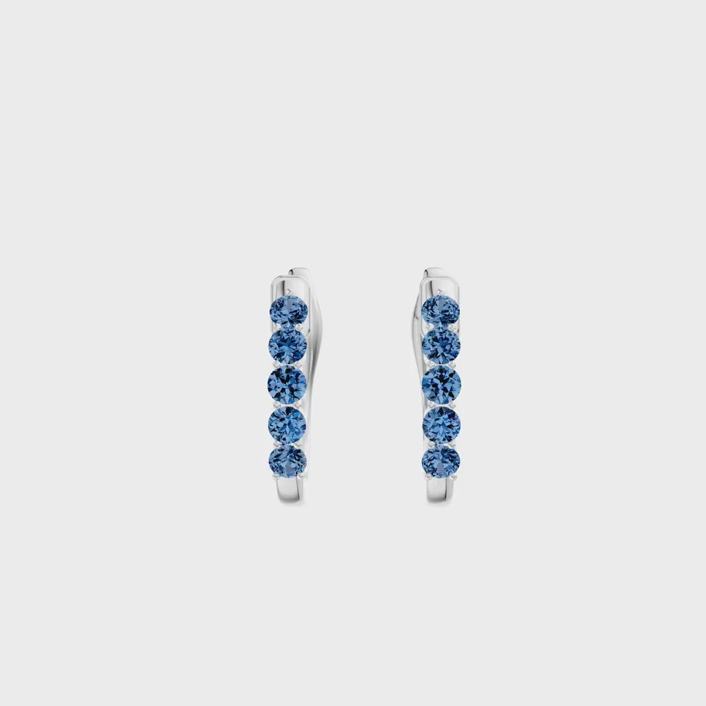 London Blue Topaz Gemstone Huggie Earrings - Alternating & one color