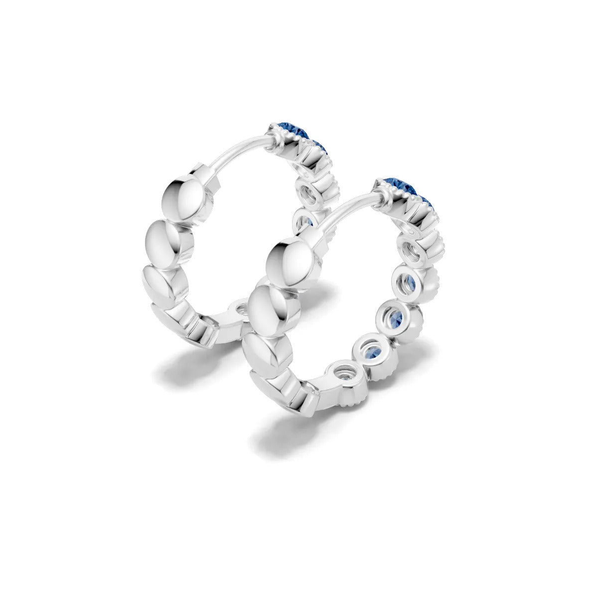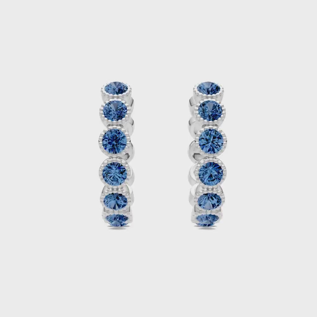 London Blue Topaz Round Bezel Hoop Earrings with Milgrain