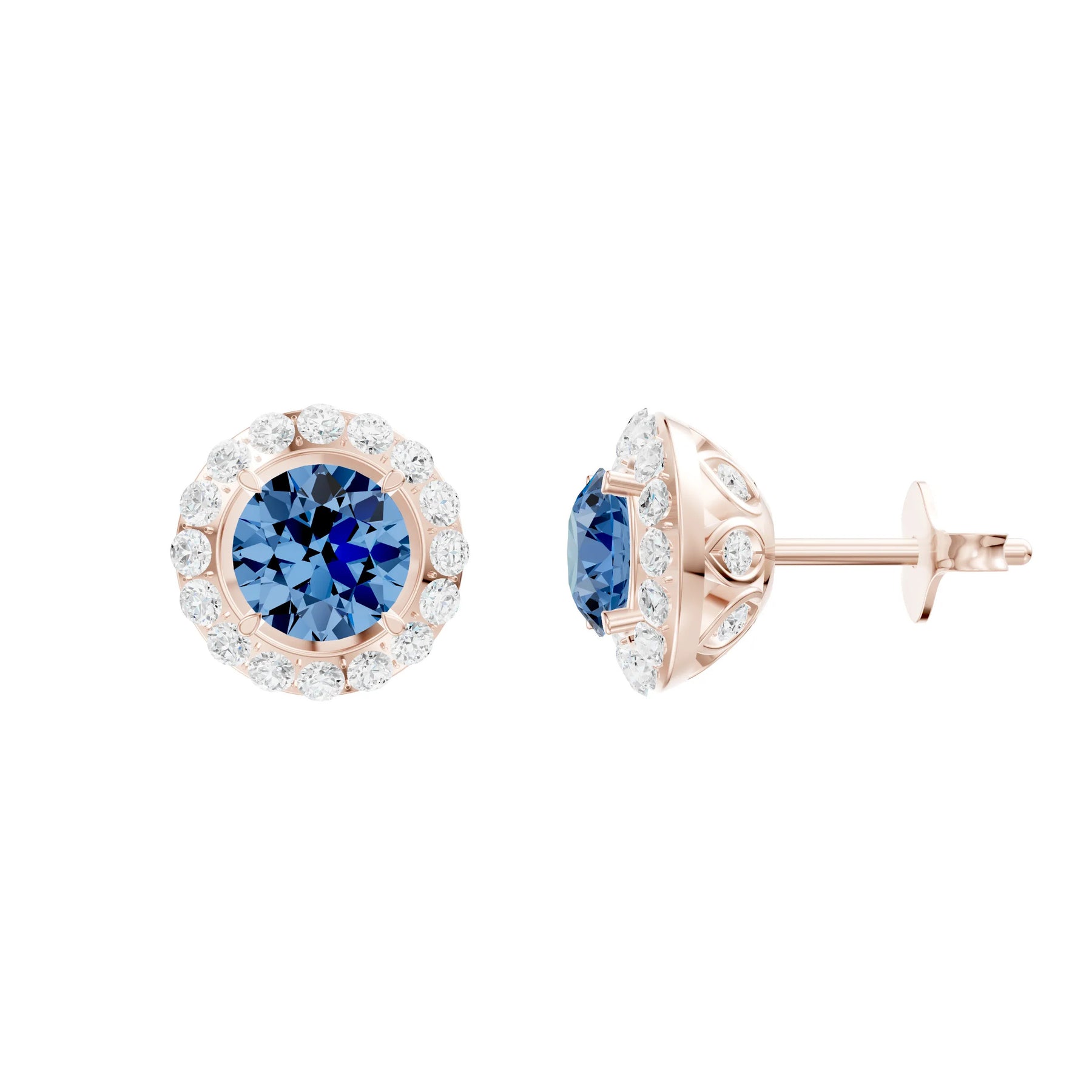 London Blue Topaz Round Halo Earrings with Hidden Diamond Gallery