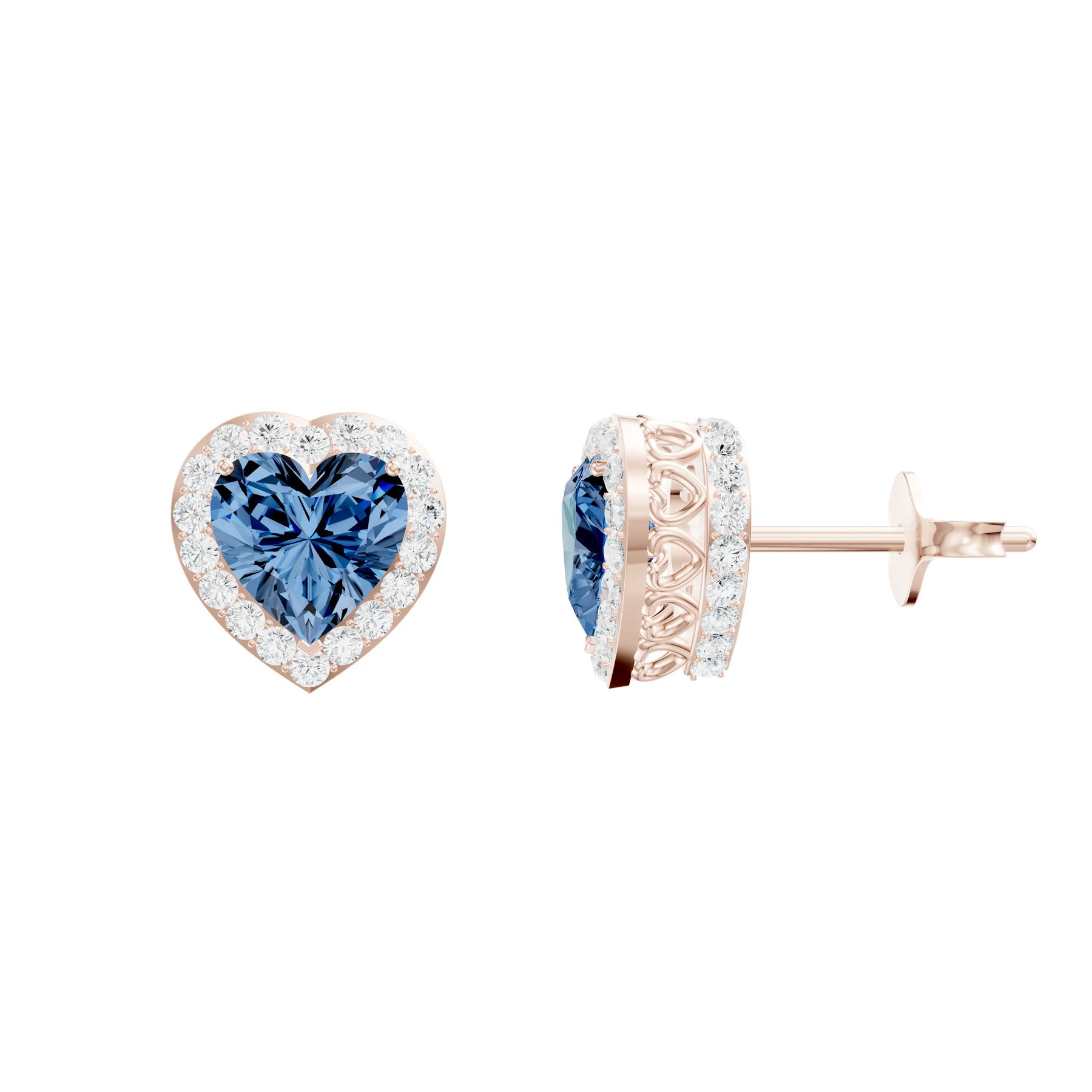 London Blue Topaz Vintage Heart Halo & Hidden Halo Studs Earrings