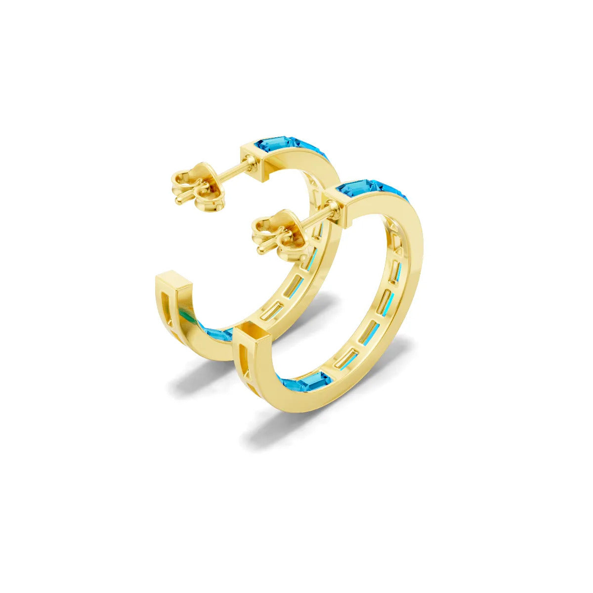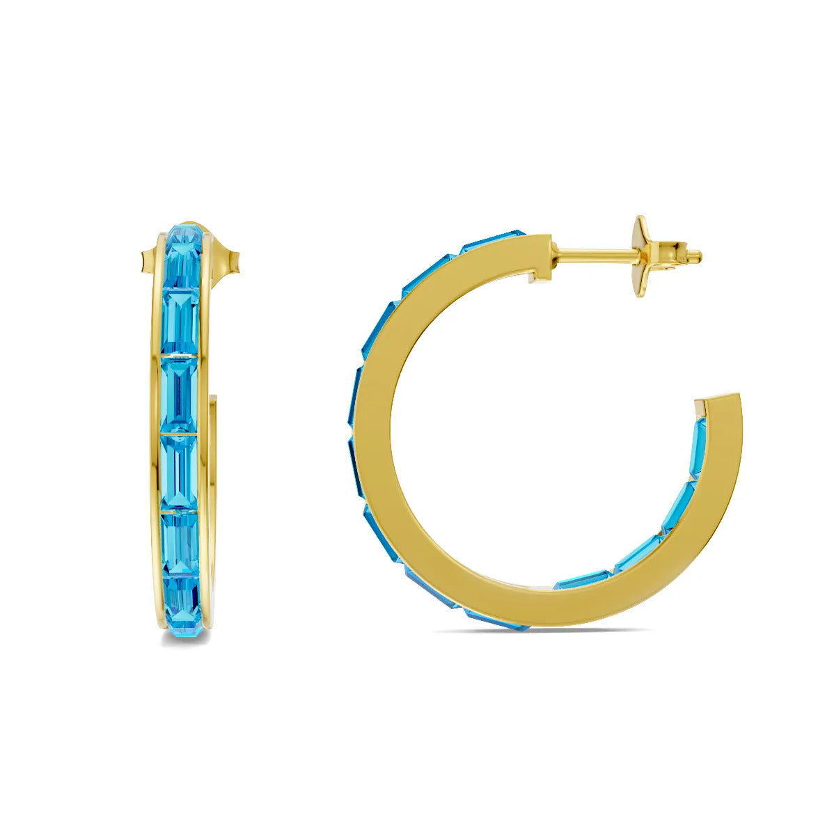 Swiss Blue Topaz Baguette Hoops Earrings