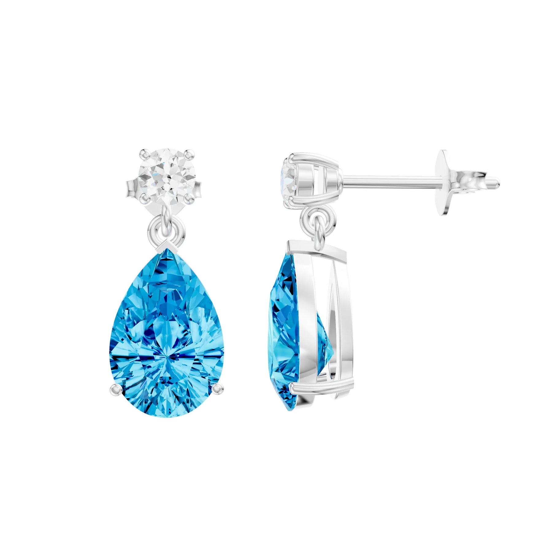 Swiss Blue Topaz Double Beacon Glimmer Stream Earrings 9x6mm