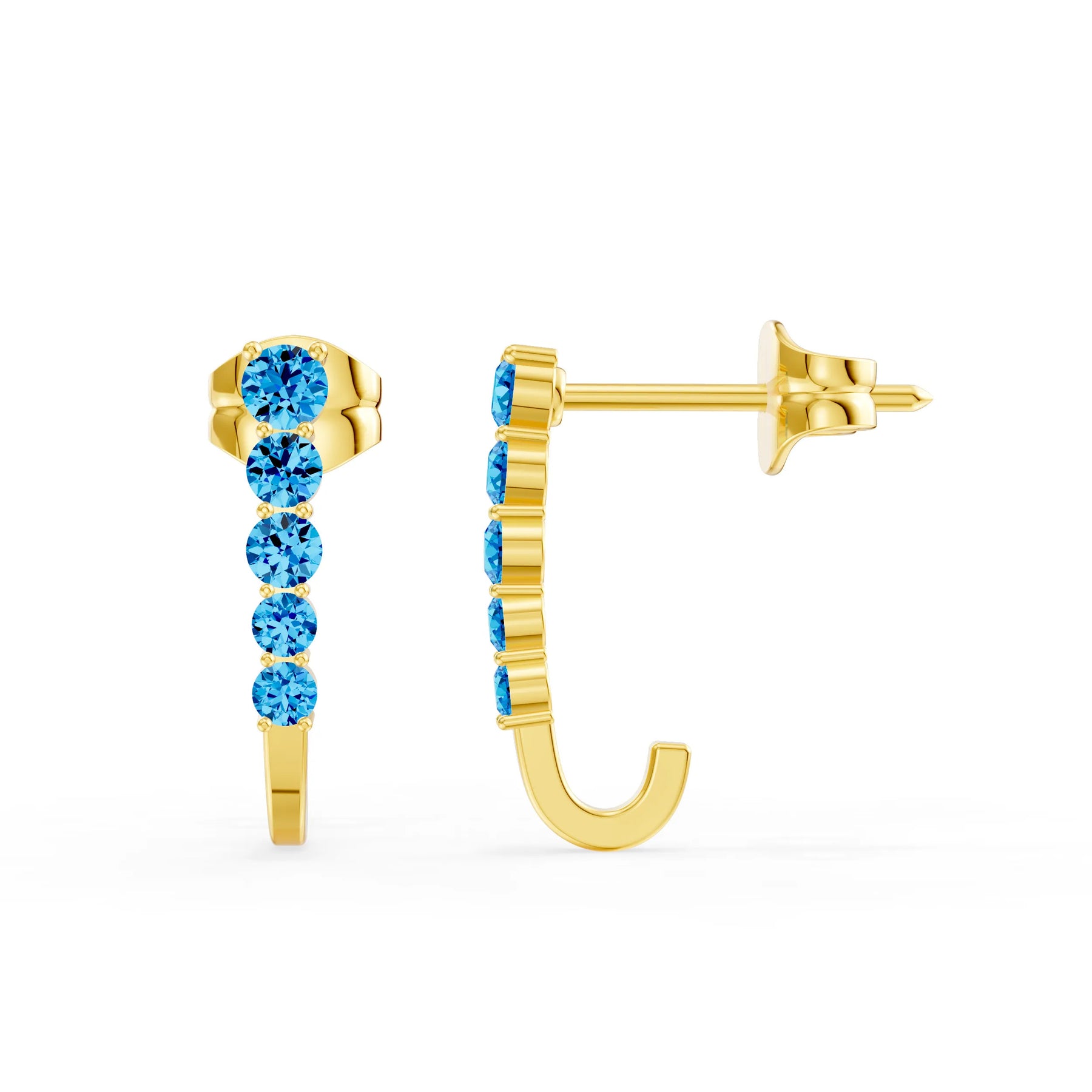 Swiss Blue Topaz Solar Path Glimmer Arc Earrings