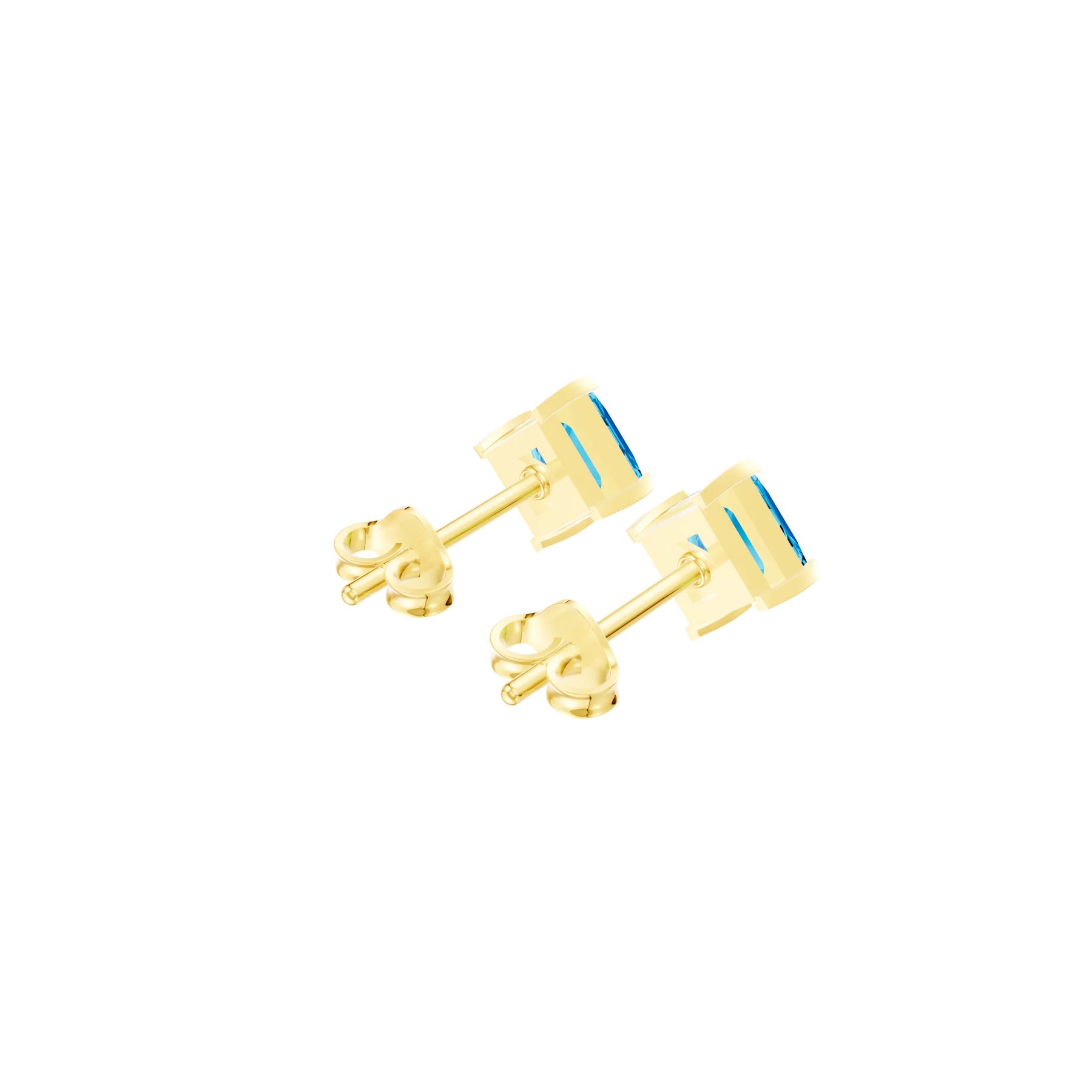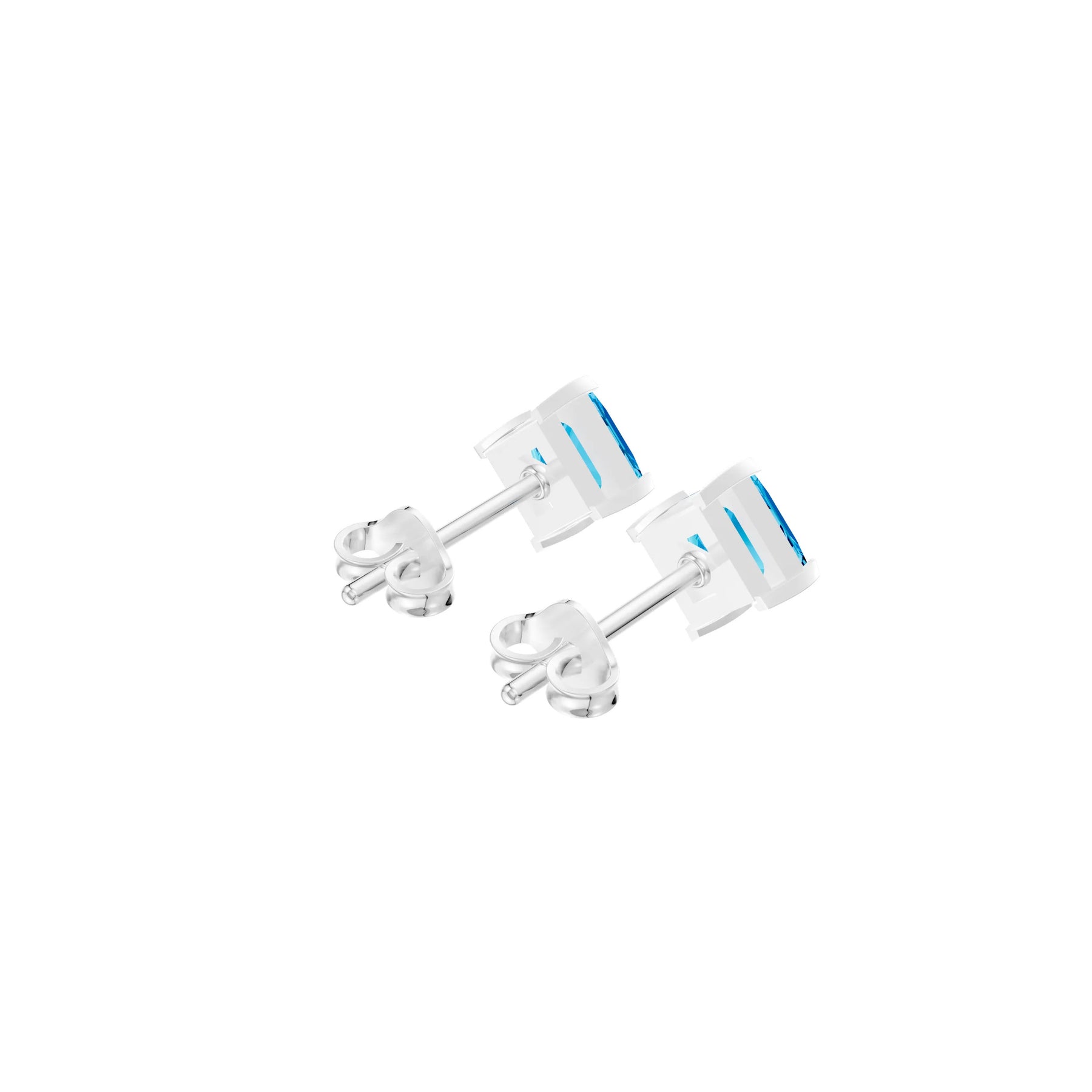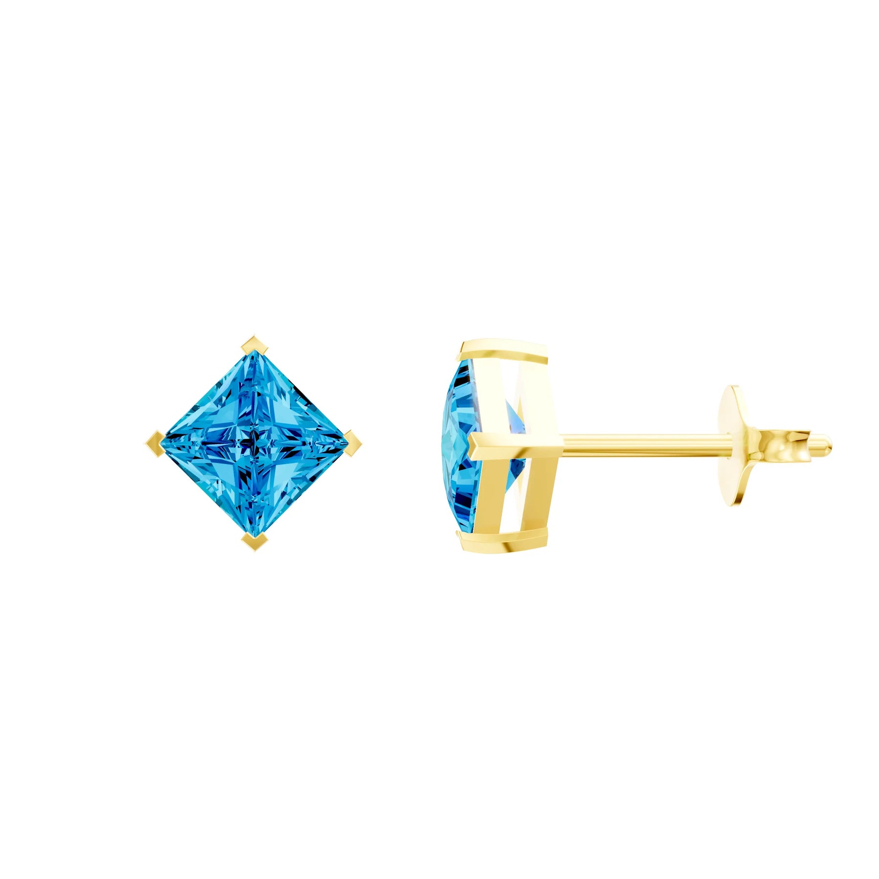 Swiss Blue Topaz Princess Studs - NSEW Prongs Earrings - 5mm