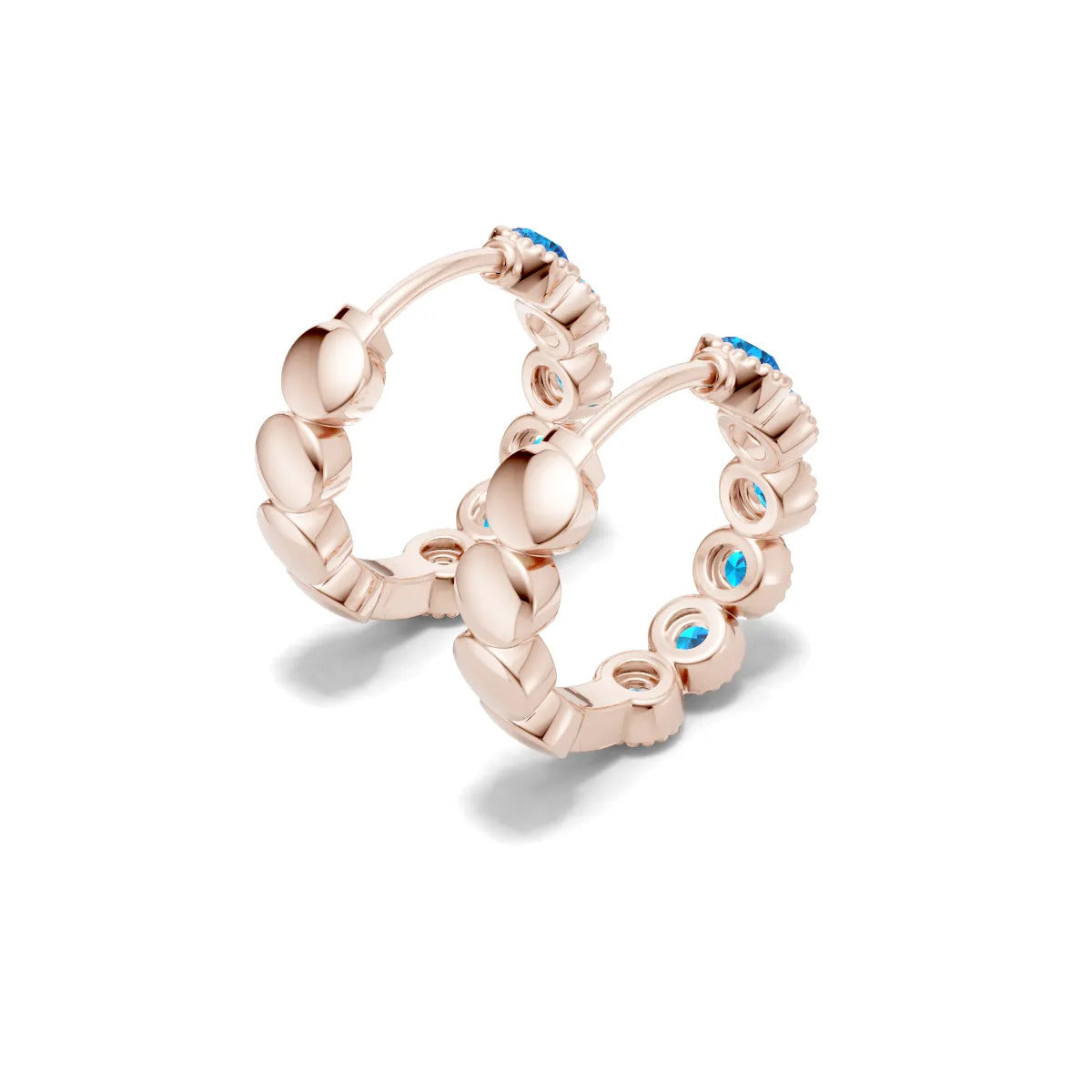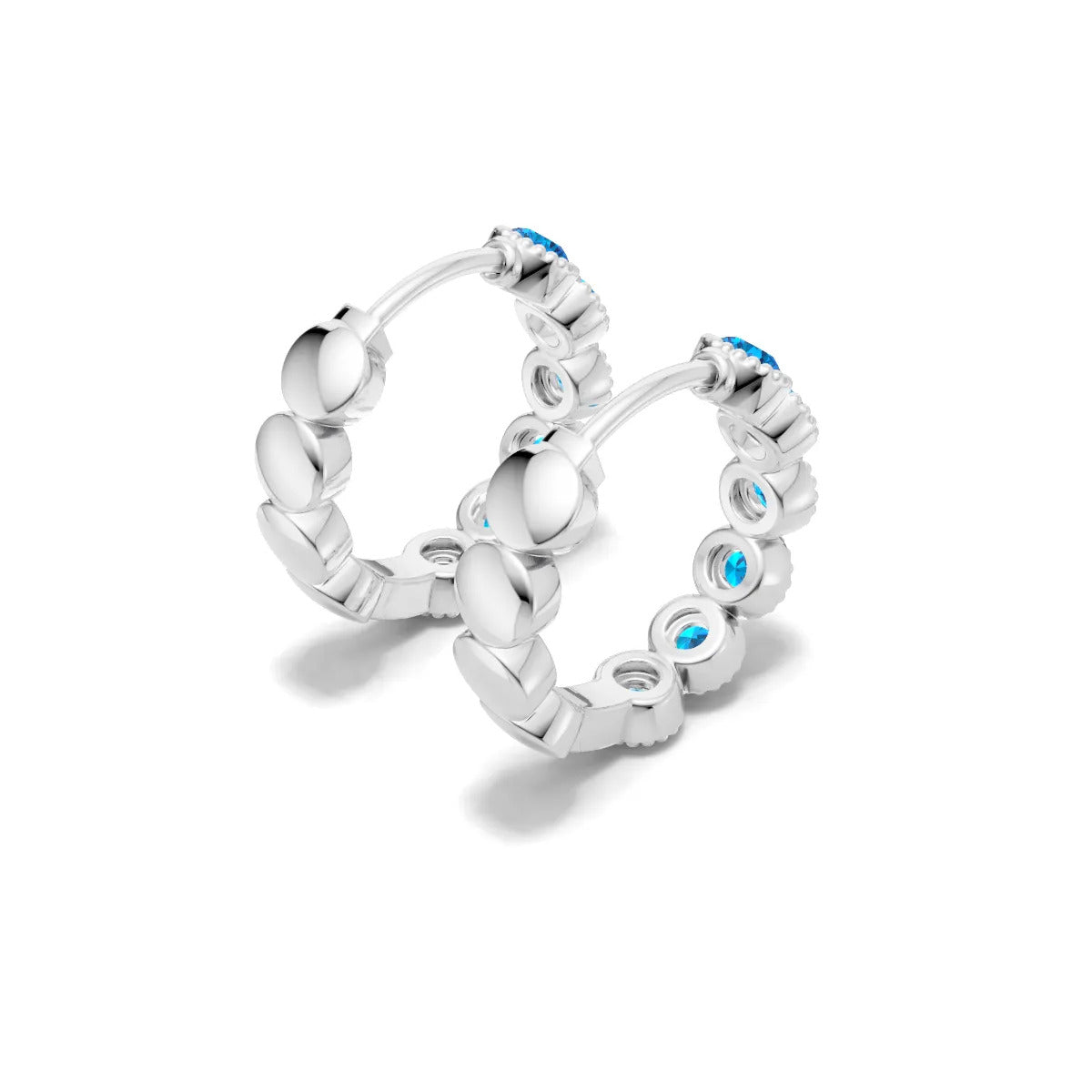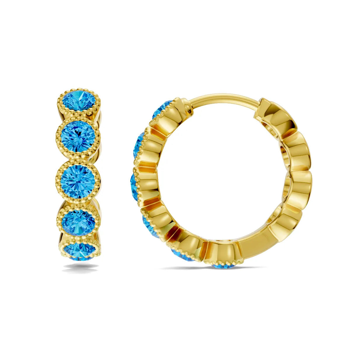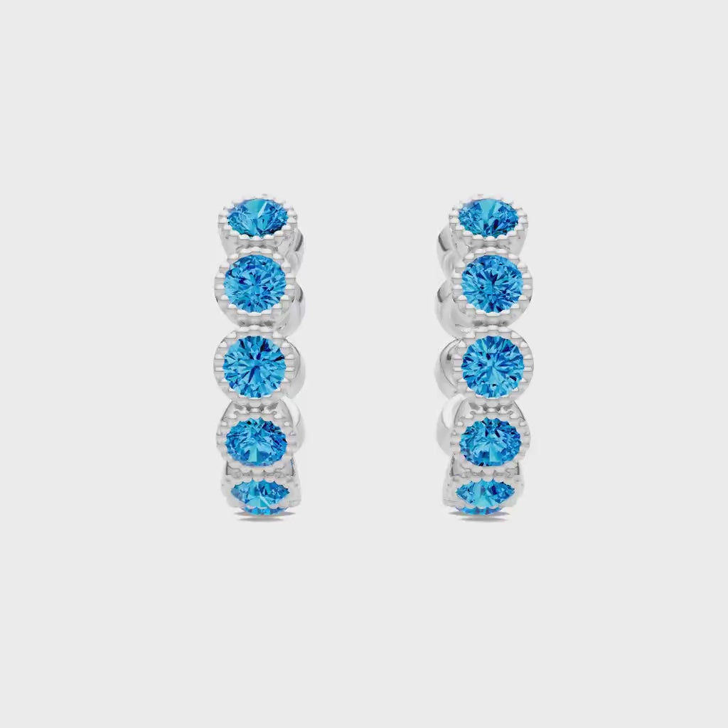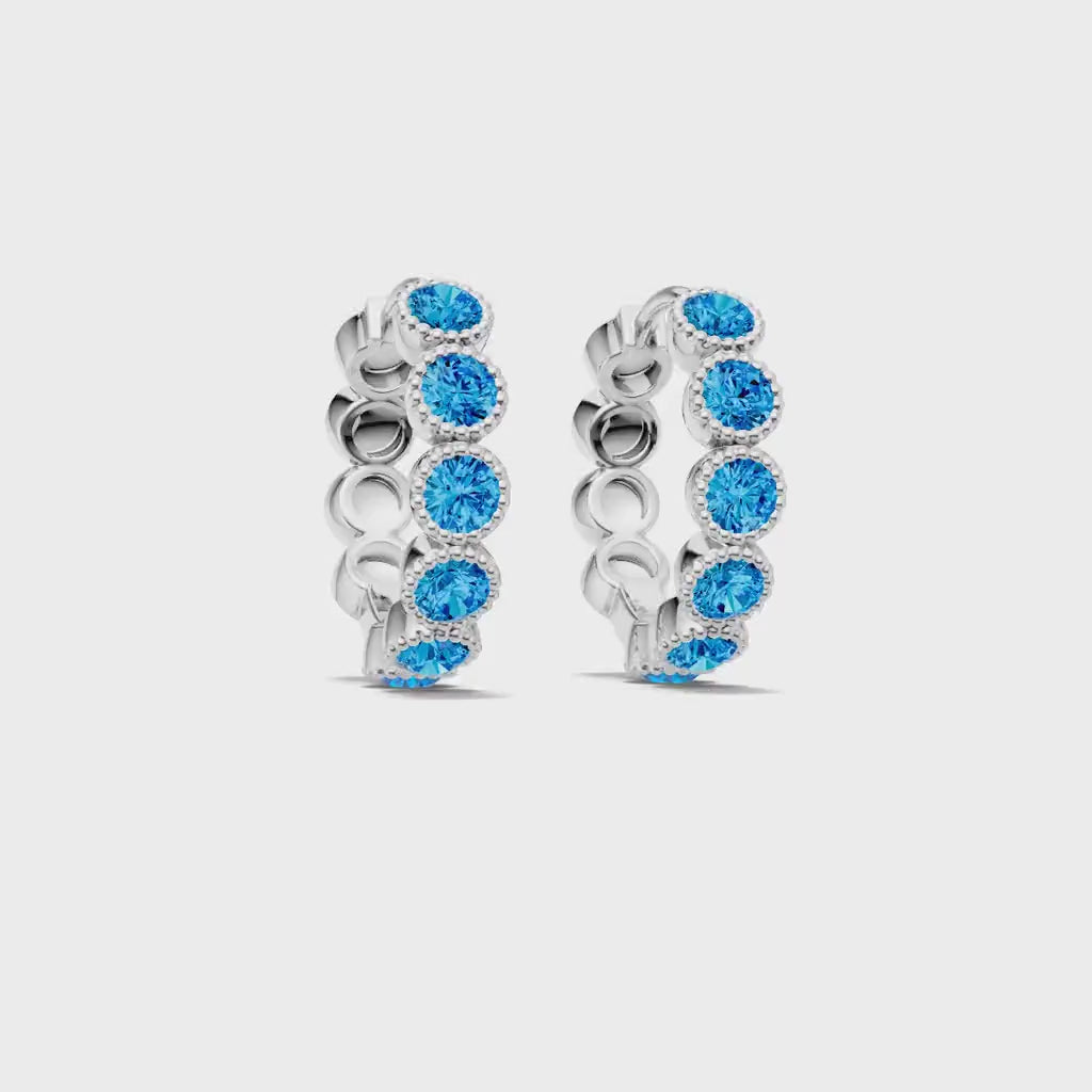 Swiss Blue Topaz Round Bezel Huggies Earrings with Milgrain