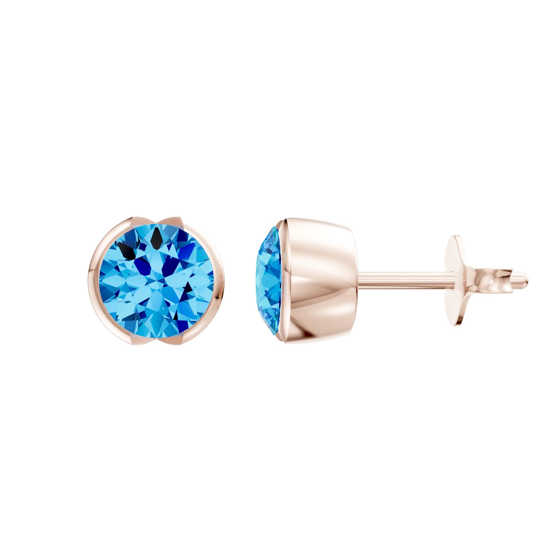 Swiss Blue Topaz Round Half Bezel Earrings - 4mm