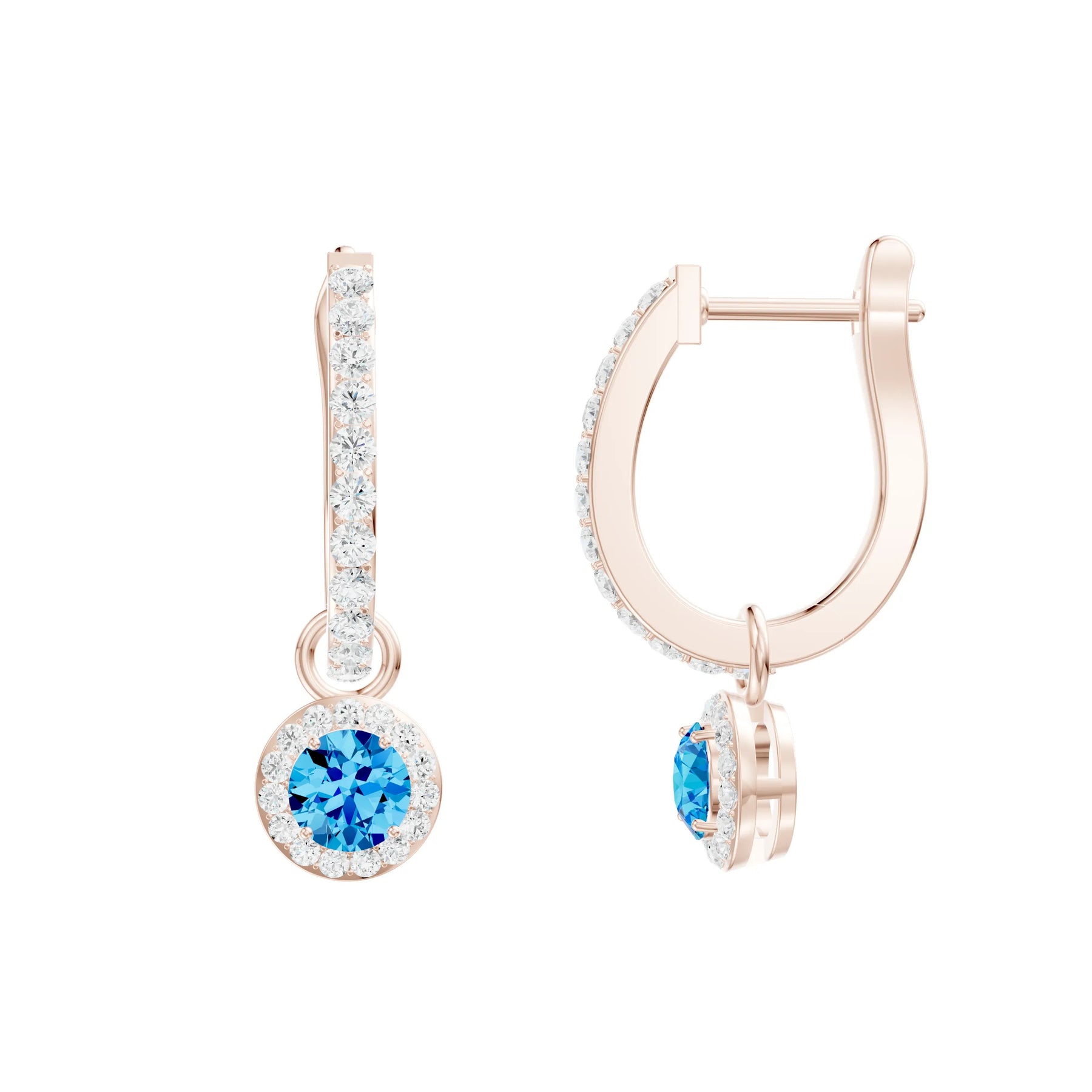 Swiss Blue Topaz Round Halo Drop Hoops Earrings - 4mm