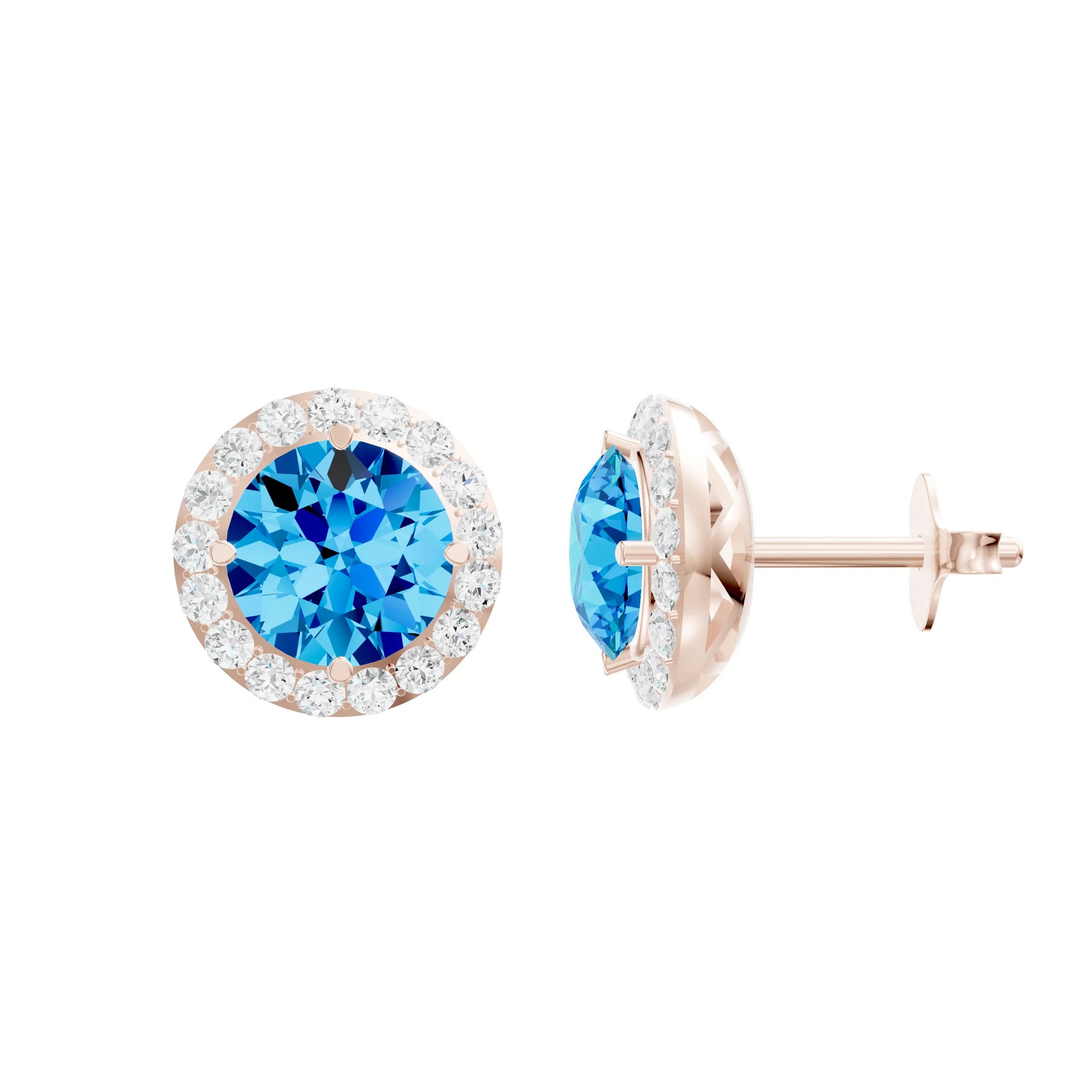 Swiss Blue Topaz Round Halo Earrings - Vintage Basket