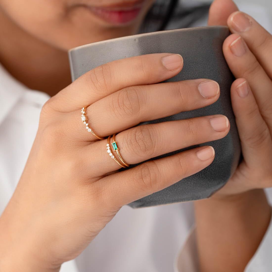 Emerald and Diamond Orla Cluster Stackable Ring 1 Carat 14K Yellow Gold Plated Sterling Silver