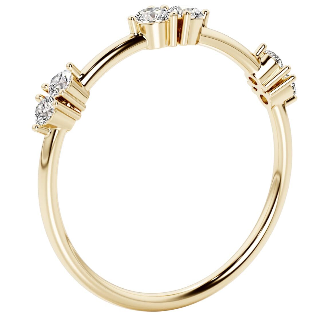 Diamond Station Stackable Ring 14K Yellow Gold Plated Sterling Silver