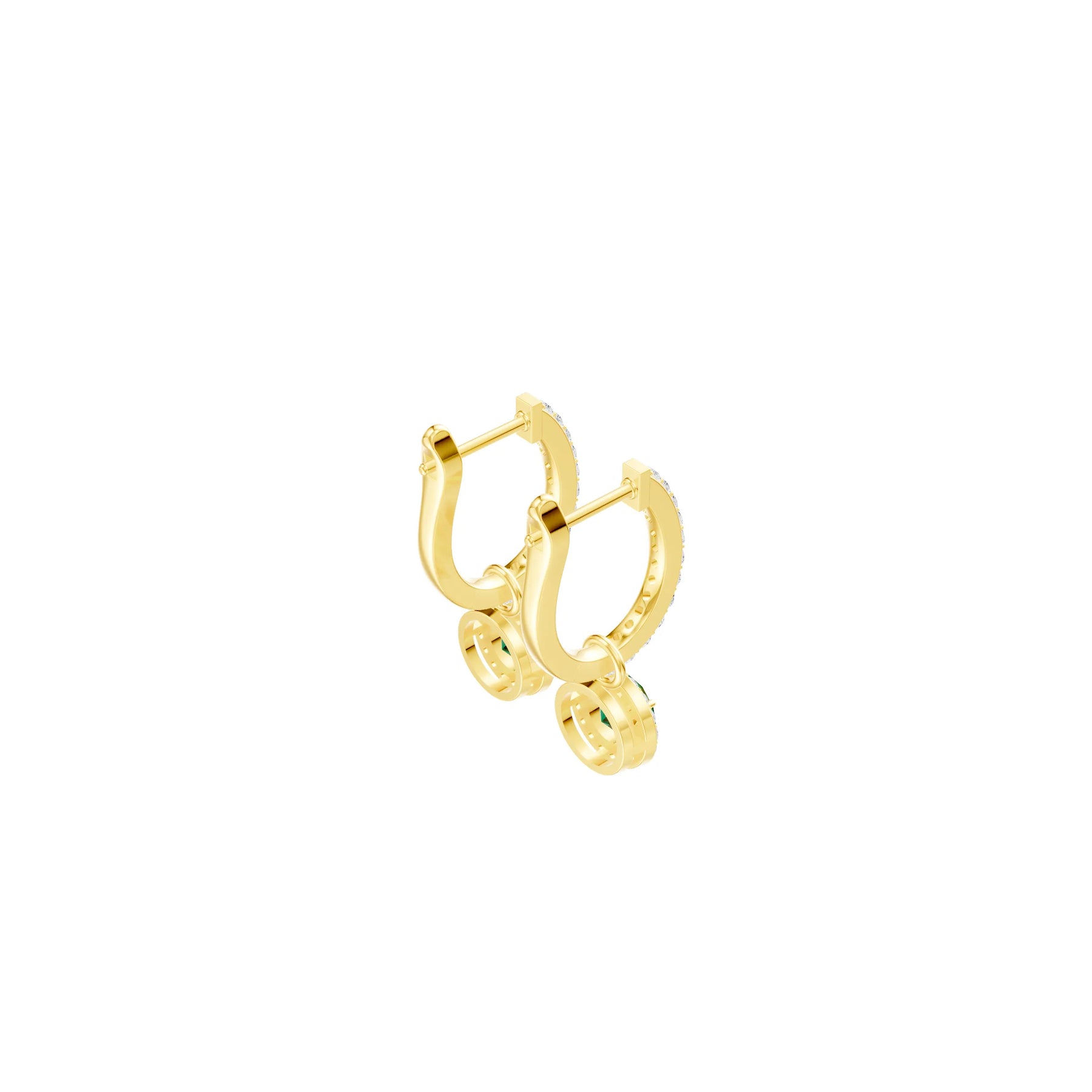 Emerald Round Halo Drop Hoops Earrings - 5mm