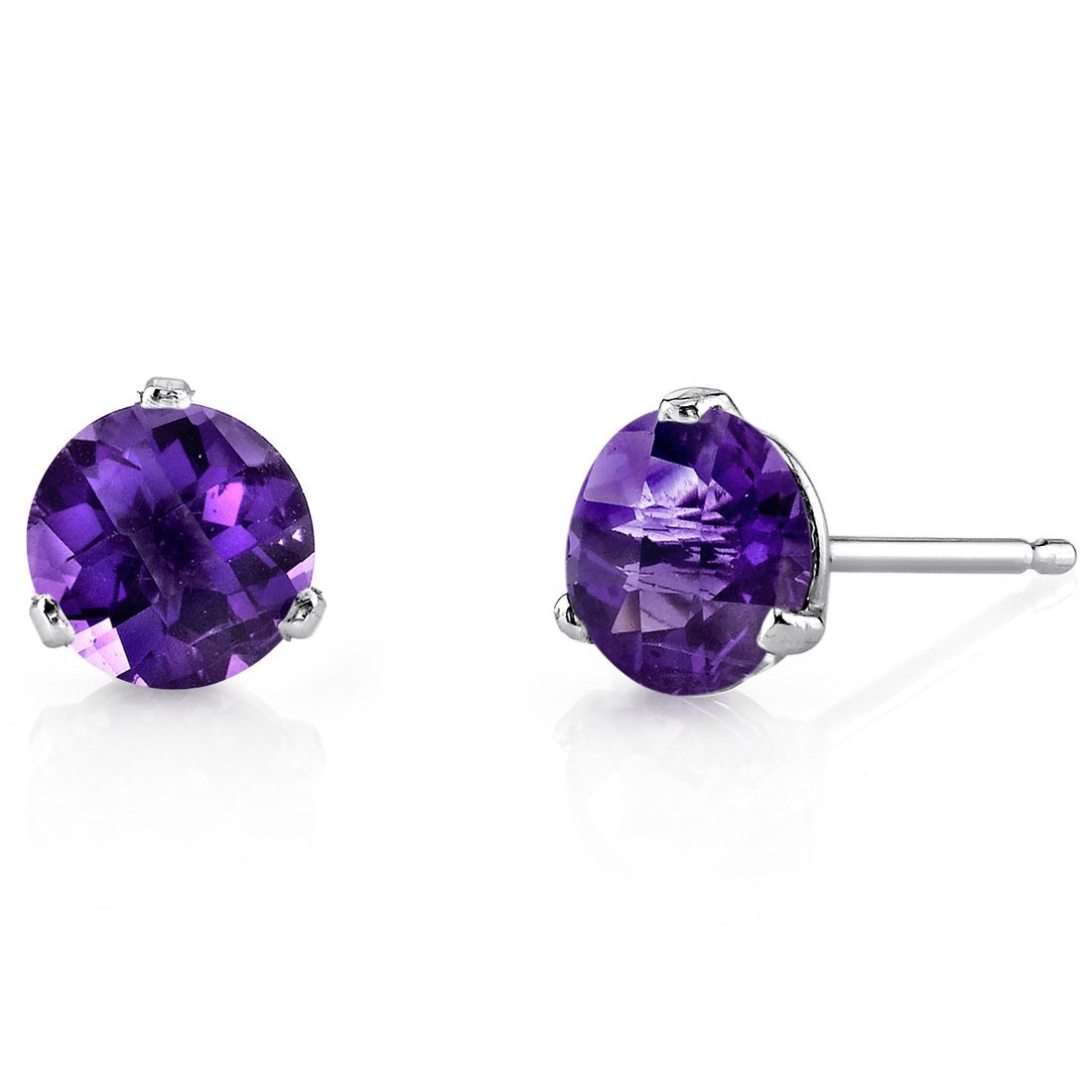 Amethyst Stud Earrings 14 Kt White Gold Round Shape 1.5 Carats