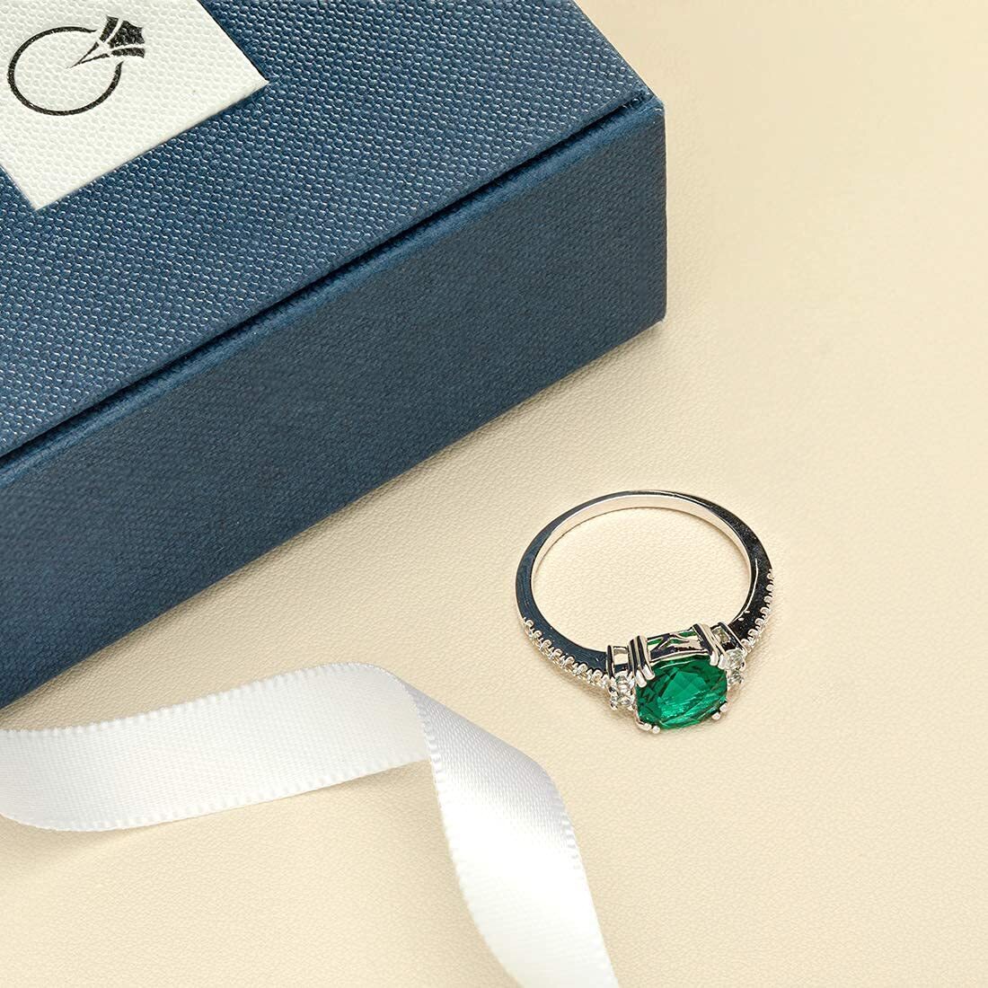 This classic ring features a cushion cut Peora created Emerald gemstone in 14K white gold.