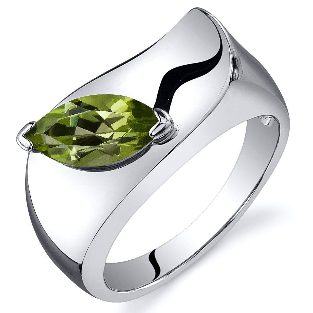 Peridot Ring Sterling Silver Marquise Shape 1 Carats