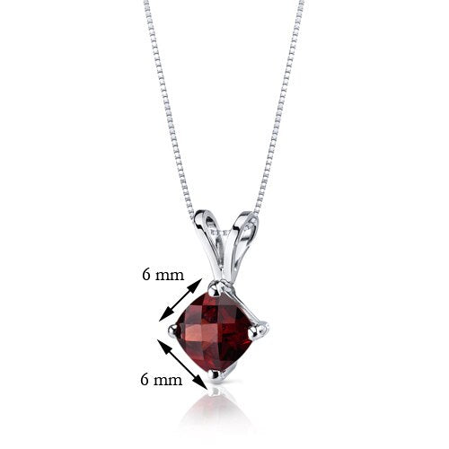 Garnet Pendant Necklace 14 Karat White Gold Cushion 1.1 Carats