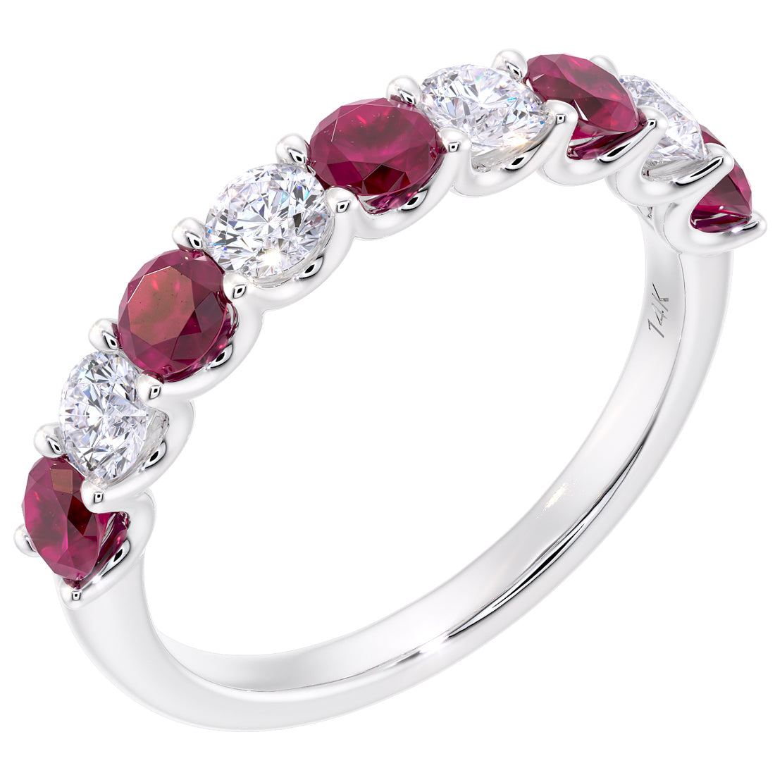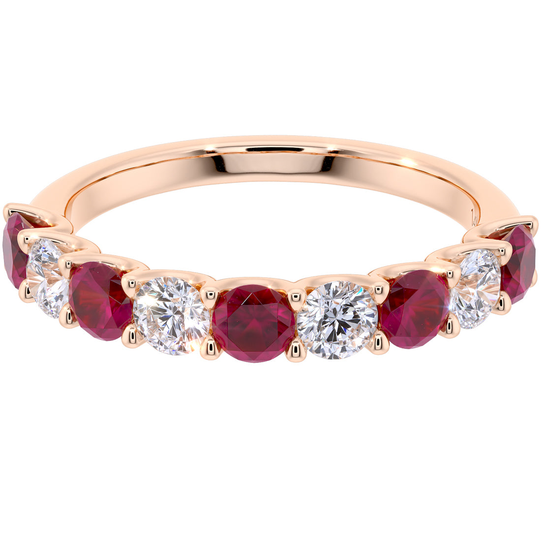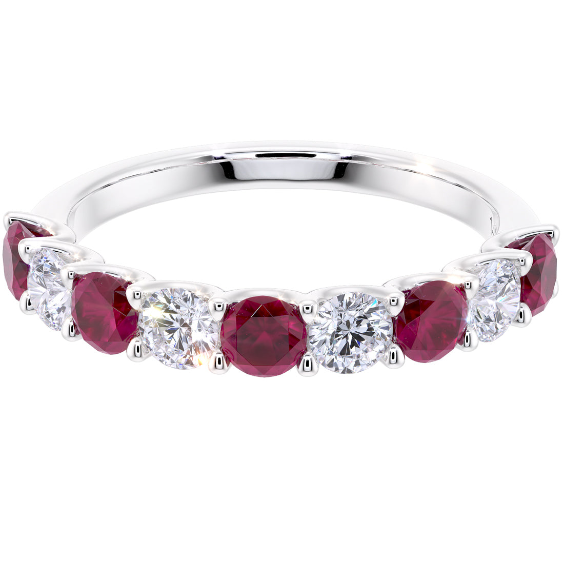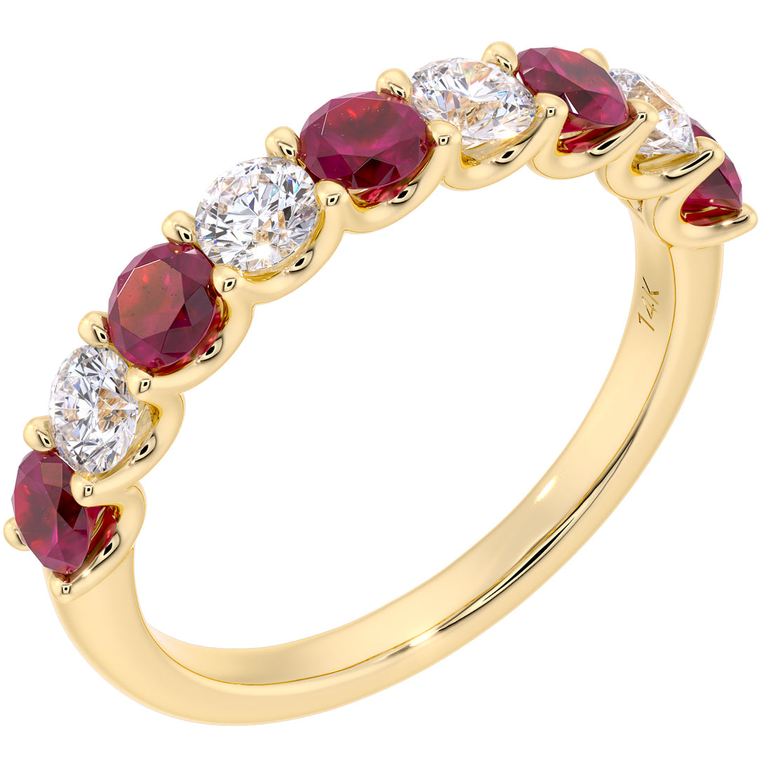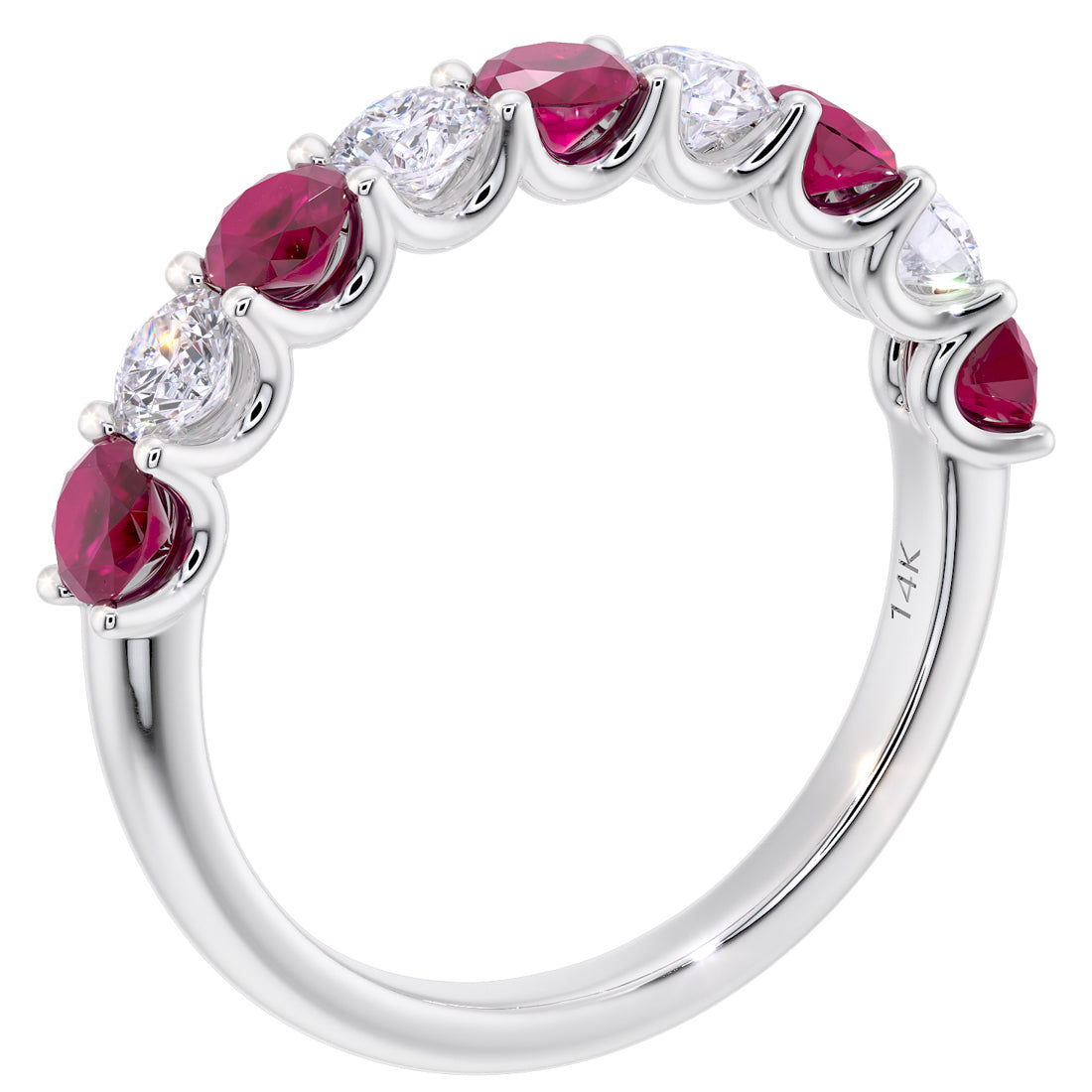 Ruby and Diamond 9-Stone Half Eternity Band Ring 14K Gold 1 Carat