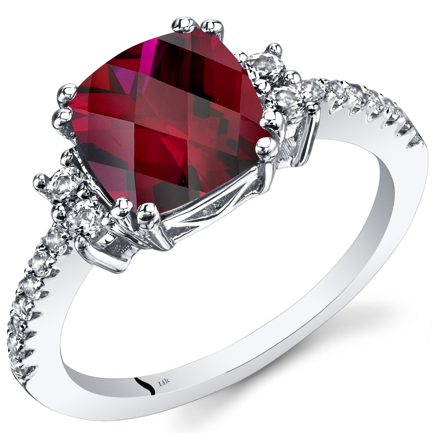 14K White Gold Created Ruby Ring Cushion Checkerboard Cut 3.00 Carats