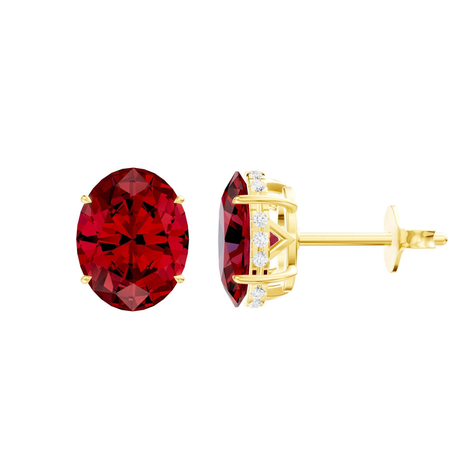 Ruby Hidden Halo Earrings - Oval - 9x7mm