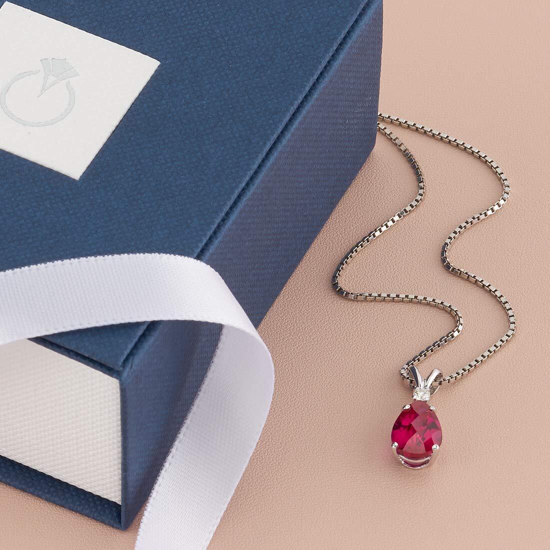 Ruby and Diamond Pendant Necklace 14K White Gold 2.49 Carats Pear Shape
